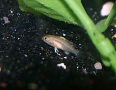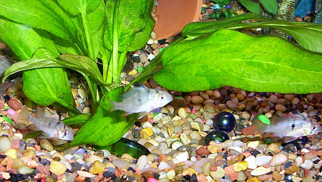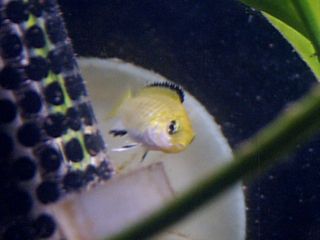 Here's some baby Bolivian Ram :-) Pic is not so great cuz I had a crappy camera then. They were so cute with their miniature black dorsal stripe! They were about 2 months here. .
