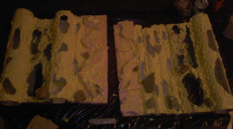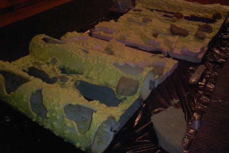 Awesome background! I made one too for my 8' tank. Instead of pipe I just used flat sheets of white insulation and cement. It took around 1 week to do it all, phew! I attached a picture.