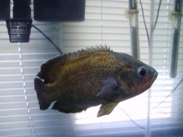That looks to be a Red Oscar. http://www.cichlid-forum.com/profiles/s ... hp?id=2439 I use to have 2 of them, and they where just a tad bit smaller. I got $20 for the both of them at my LFS. If you get a pubic buyer you might get more. Just depends on how bad they want it.