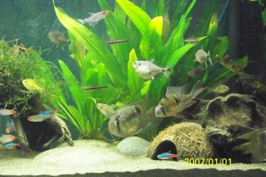 We had a male and female silver molly die late April and replaced them with dalmation mollies around mid May. All the other fish are doing fine (redtail, albino cat, male dwarf gourami, female gold dust molly, 2 white hifin tetras). All of these fish have been in the tank since Jan.