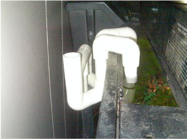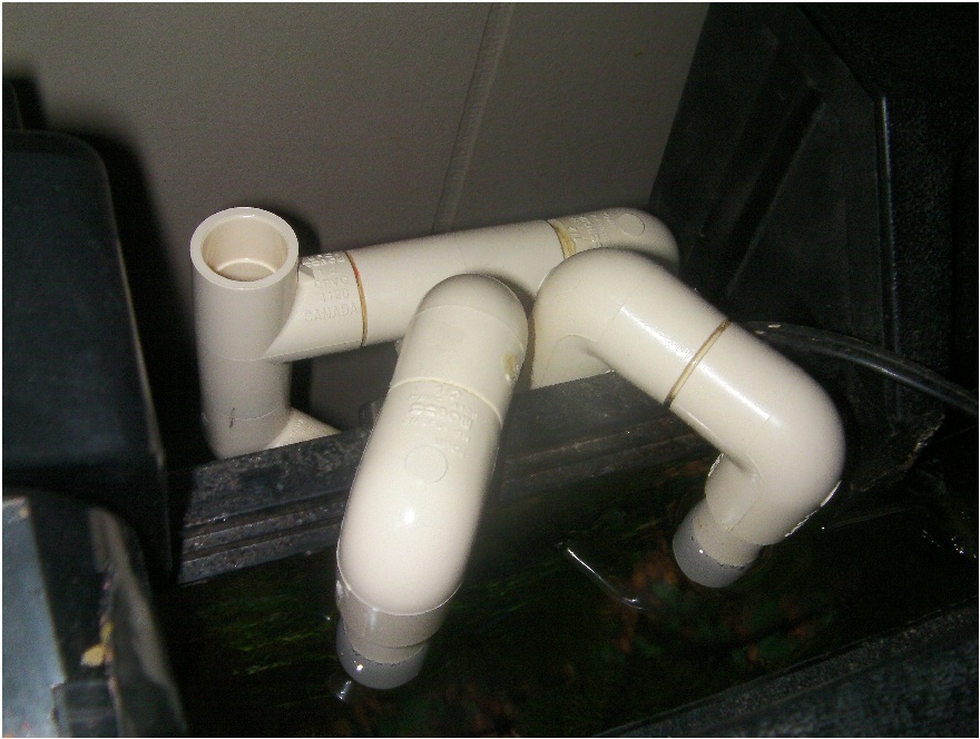 So I set out on a journey to build everything from things I could get at Walmart and Canadian Tire. The sump box was easy, a bathroom garbage can (albeit I had to get a second one because I failed to check for holes in the first one. When trying to contain water holes are not your friend) The overflow was the difficult part. I know the basic concept of siphon (helluva way to get free gas), but the 5 mins of looking on the internet lead me to a huge ugly PVC overflow. no dice I like clean looking tanks. So using nine 1/2 inch PVC elbows and two tees (T's) I came up with this: