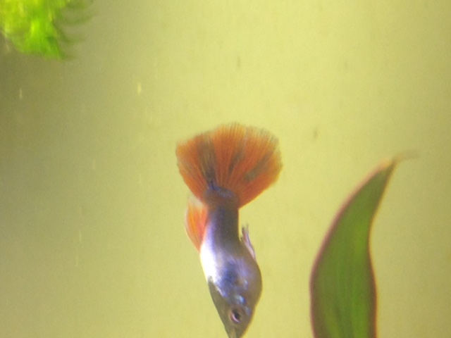 [attachment=0]IMG_4454.JPG[/attachment] The one male guppy who has recently developed some black marks on its tail. It seems to only be superficial at the moment as his behaviour is normal and he is still eating. All the other 3 guppies are looking fine.[attachment=1]IMG_4450.JPG[/attachment] The same plant with dead tips/white fuzz growing on it (this is the only tip that has the fuzz on it so far