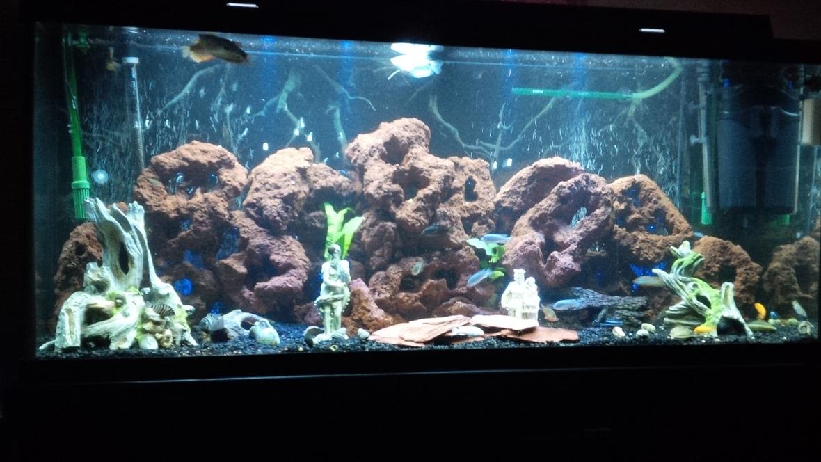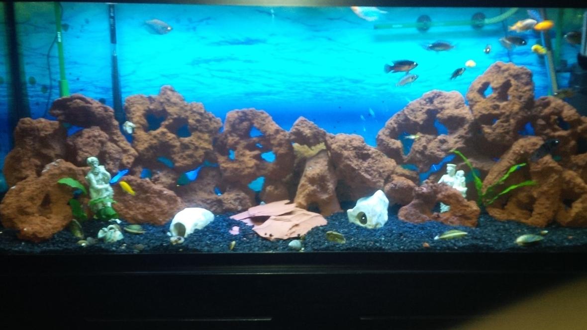 Using two ehiem 2215 filters, fake wood with red lava rock with black substrate. Two heaters on either side and i just tried placing real plants onto the lava rock ti see if it will latch on. Let me know what you think
