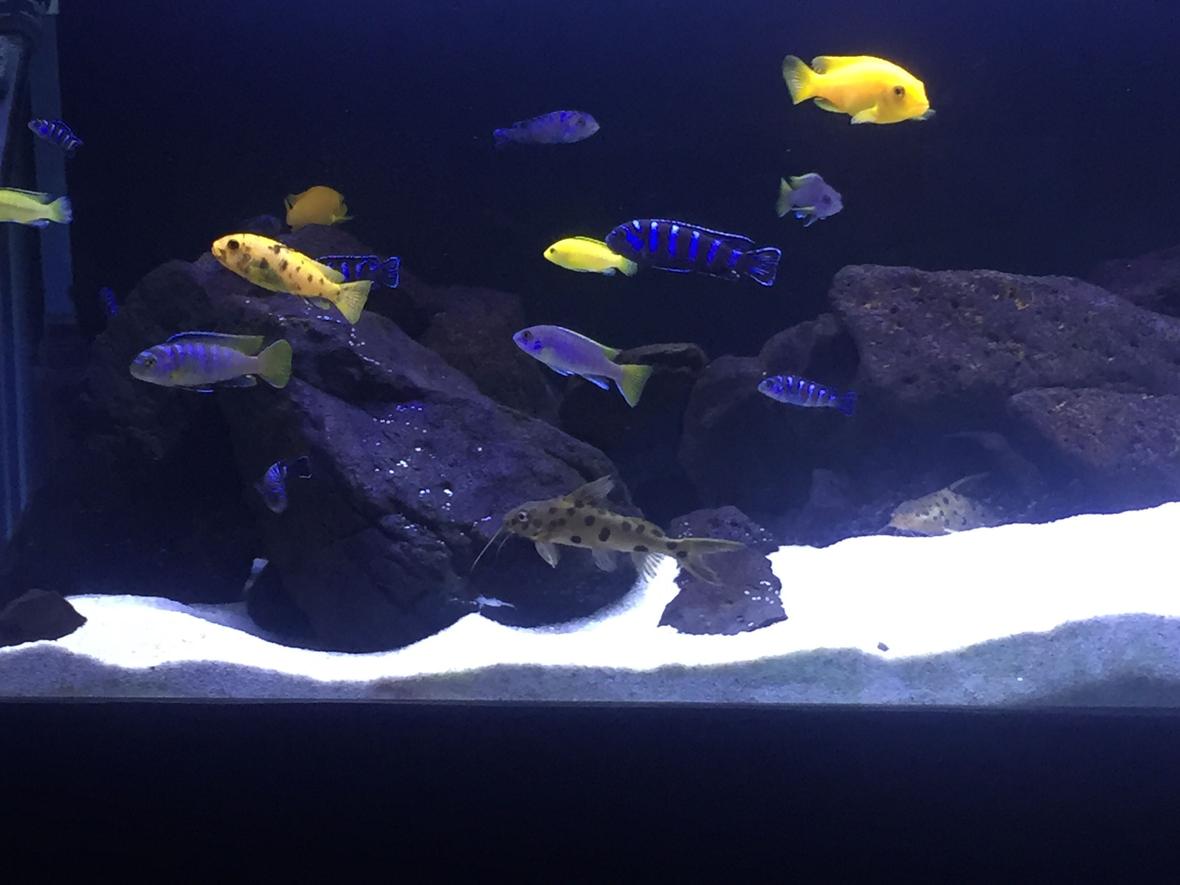 Electric Yellow Cichlid, Electric Yellow Cichlid, Red Zebra Cichlid, Bristle-nose Catfish, Synodontis Multipunctatus Catfish, Demasoni Cichlid, Bumblebee Cichlid, Red Zebra Cichlid, Hongi, Acei Cichlid