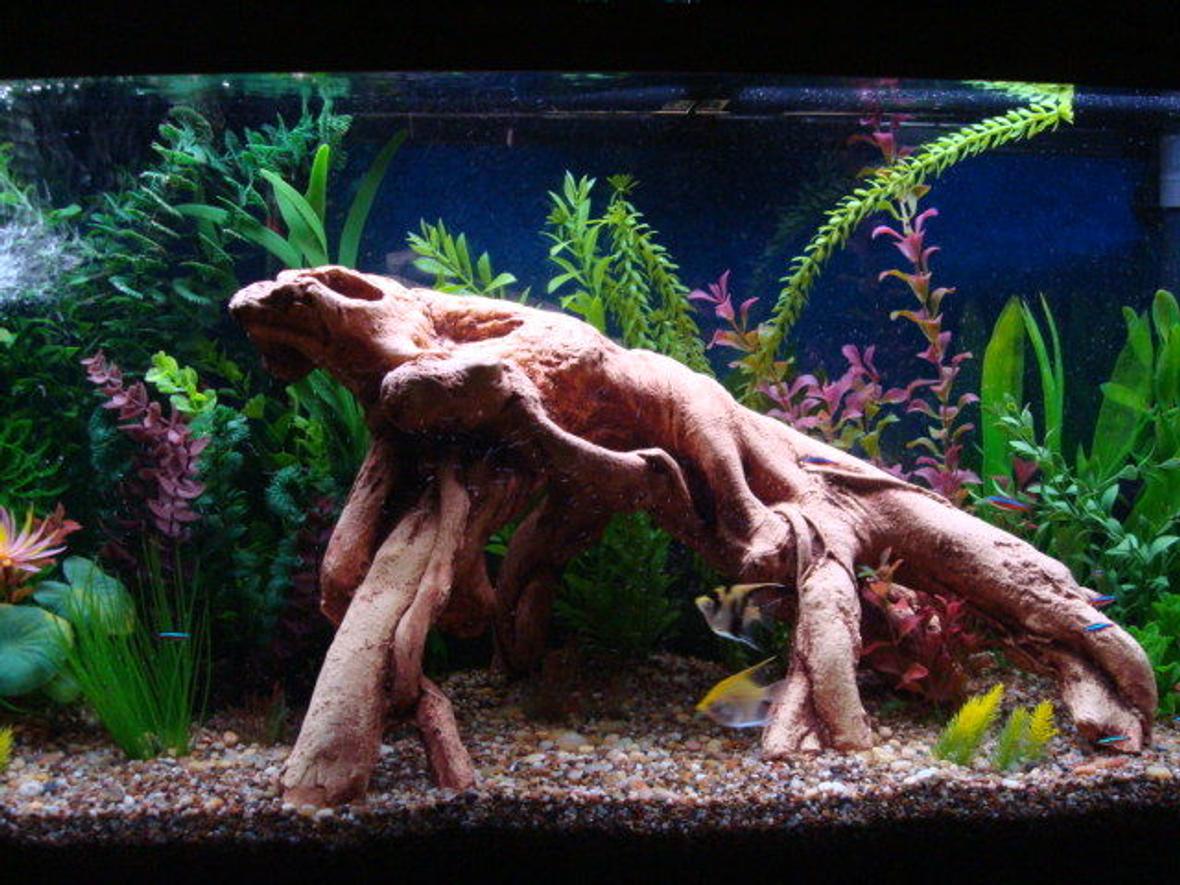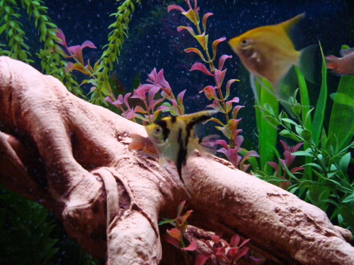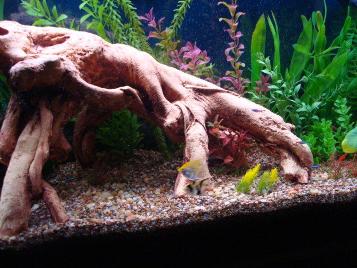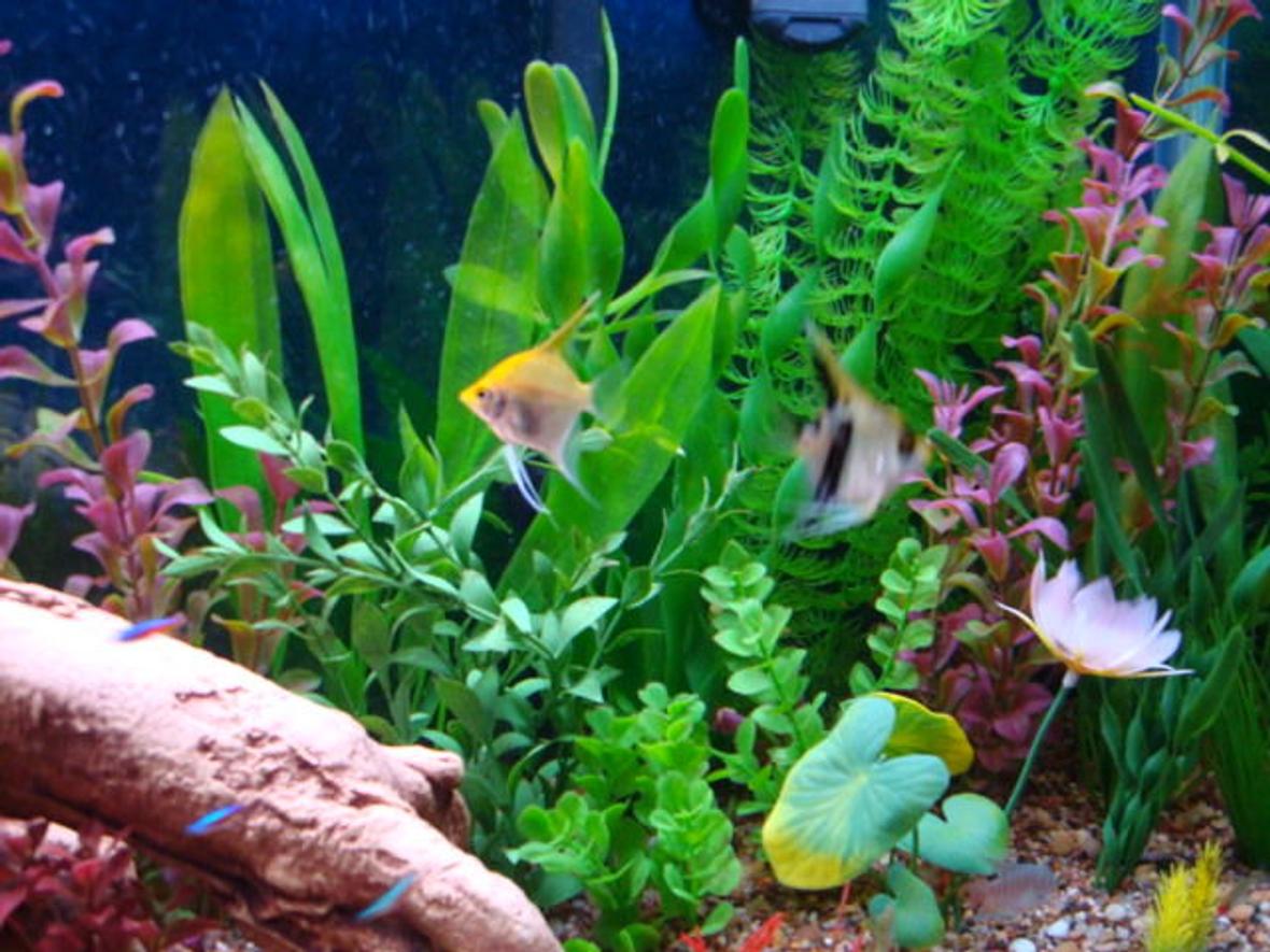 Currently since this is a new tank since I am using my old for a reef tank I only have 2 paradise gouramis, 2 Angels, 10 cardinals, 3 rummy nose, algae eater.