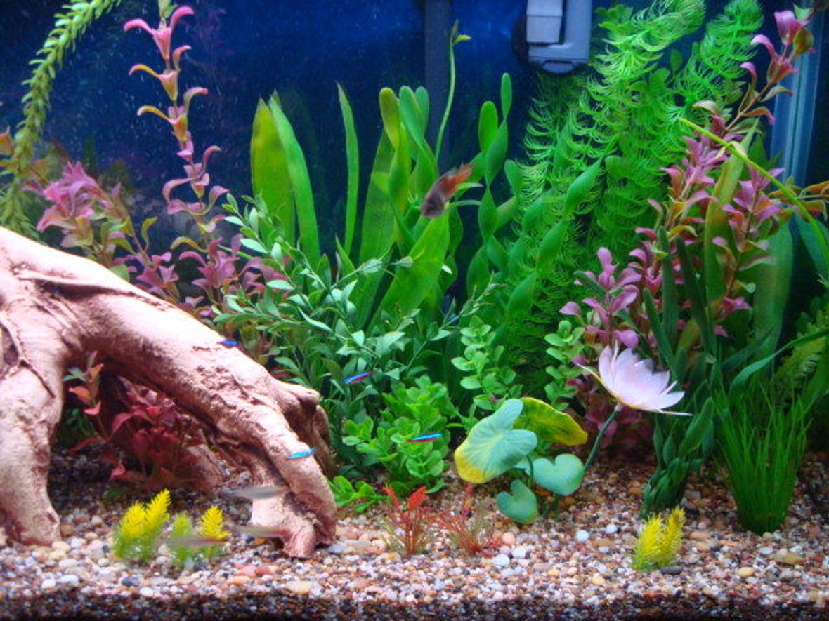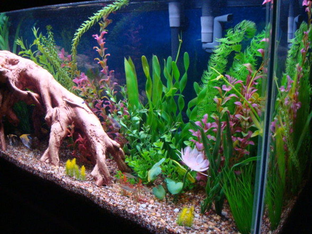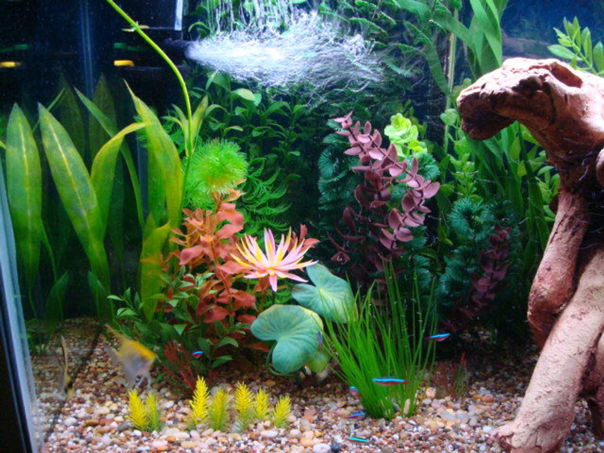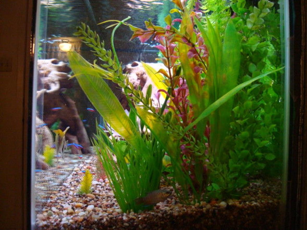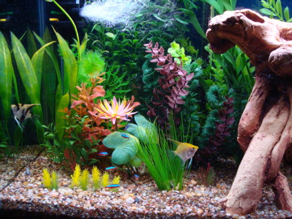 Currently since this is a new tank since I am using my old for a reef tank I only have 2 paradise gouramis, 2 Angels, 10 cardinals, 3 rummy nose, algae eater.