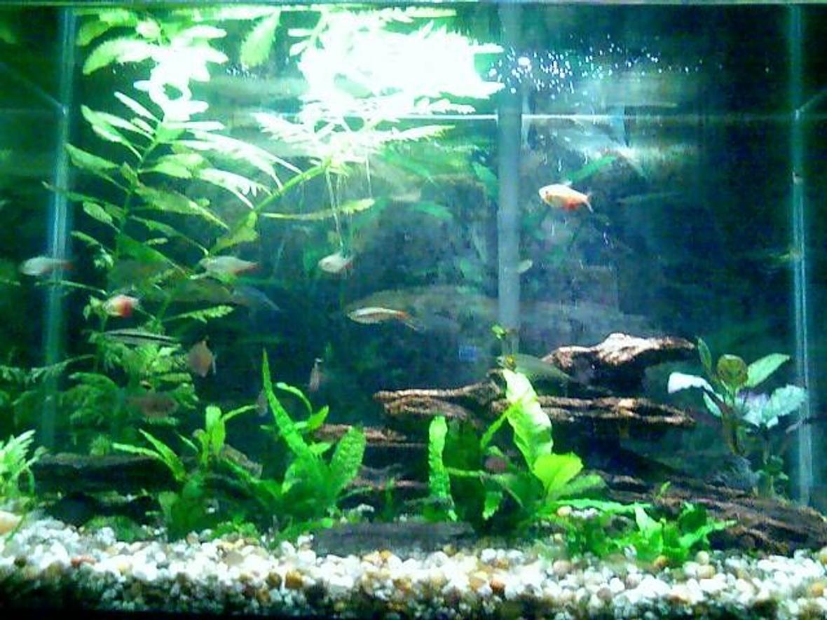 2 Albino Cory Catfish, 2 Chinese Algea Eaters, 1 Flying Fox, 3 African Dwarf Frogs, 1 Dwarf Gourami, 1 Powder Blue Dwarf Gourami, 1 Redfire Dwarf Gourami, 3 Bloodfin Tetras, 3 White Cloud Mountian Minnows, 3 Ghost Catfish, 3 Orange Von Rio Flame Tetras, 3 Bleeding Heart Tetras