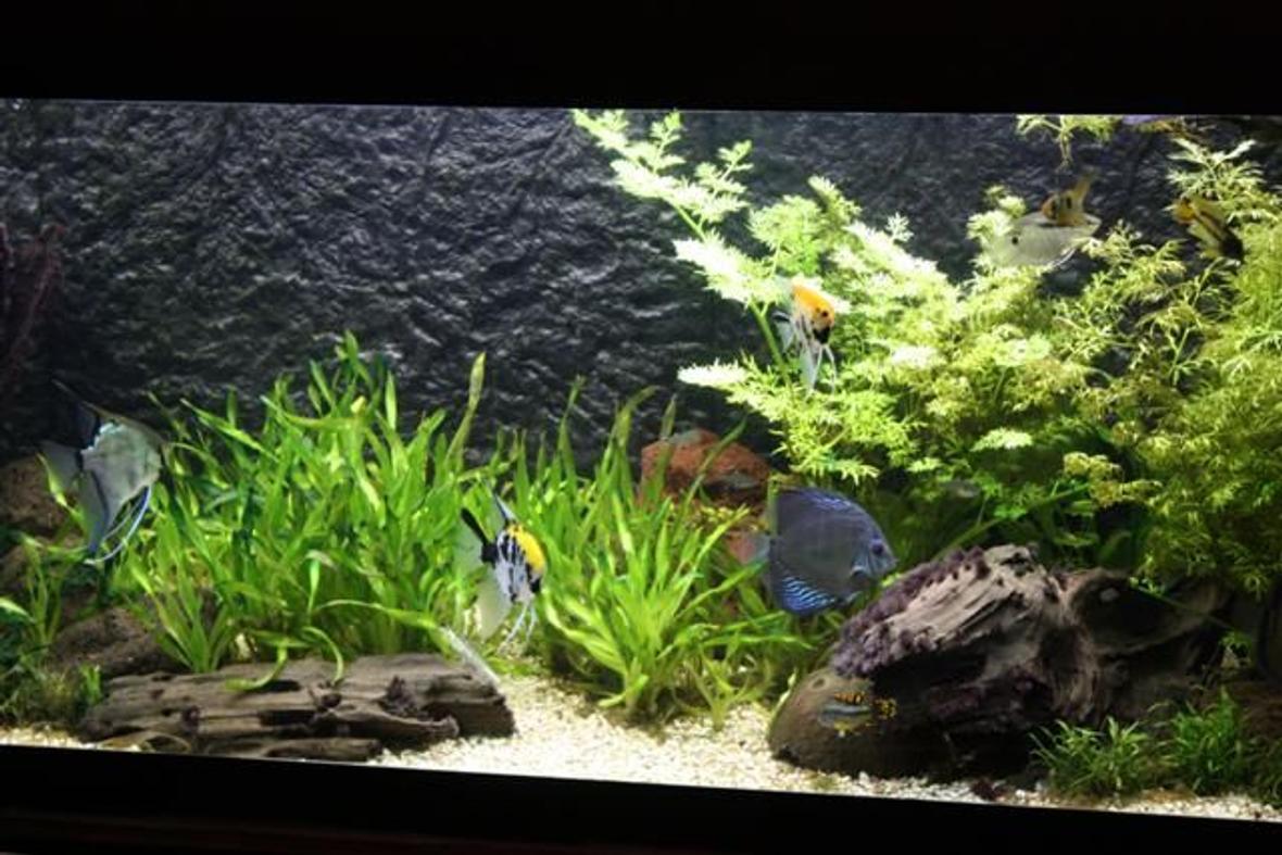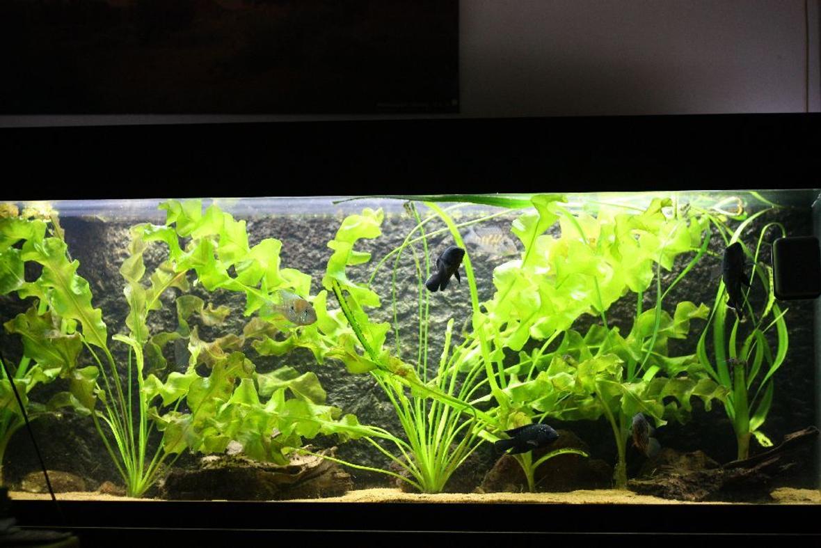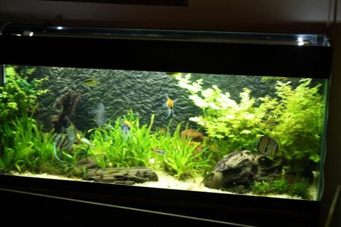350Liter (130x50x50) with filter pro sp2 (external filter), T5 lightning ,aquaheater 300w, mostly amazonfish like angelfish,dwarf cichlids, discus, corydoras ...