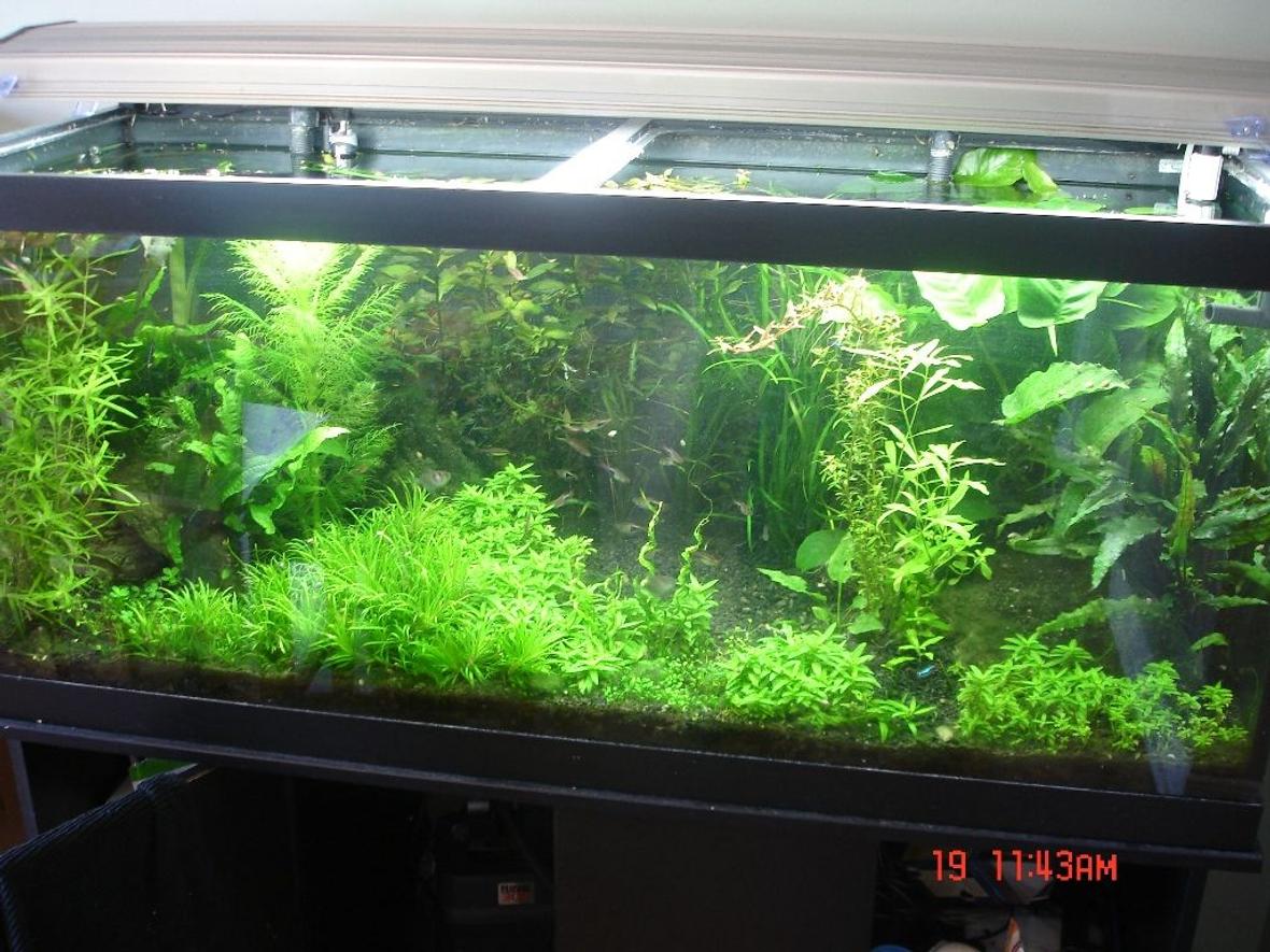 CO2 injected, home made reactor, T5HO lights. 216 watts. dry fertilizer, EI dosing plus Iron. no CSM+B used.4' x 18" x 21"