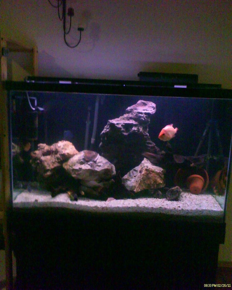 A lot of African Cichlids: Frontosas, Electric Blue, Sp44, Compressiceps, Electric yellow, acei, Petenia Splendida, angelfish, guppies, plecos ( bristlenose and regular) great whites, and Hillstream loaches!