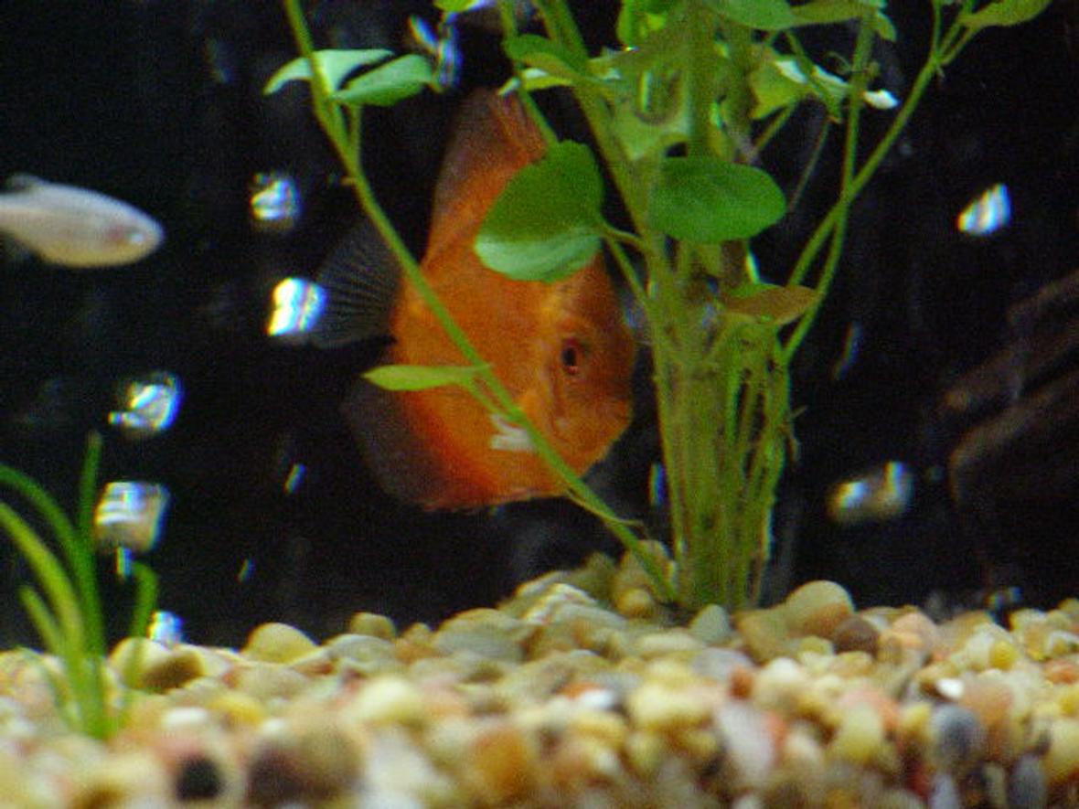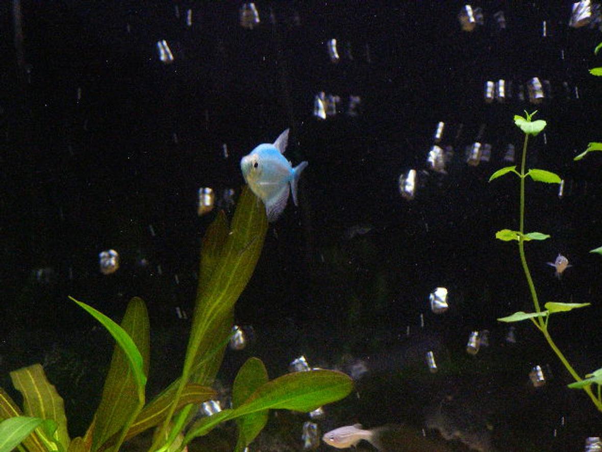 Two Discus, Two Koi Angel Fish, Three Blueberry Tetra, Eight Blue Longfin Danio,and Six Otto Cats to clean the algea