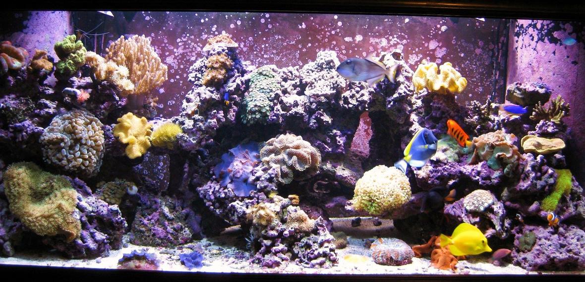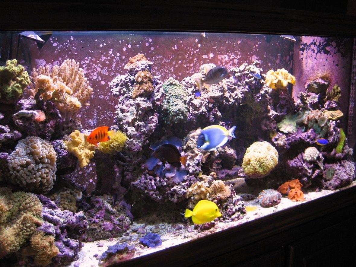 120g Reef Tank, (approx. 5'x2'x2') 180 lbs L.R., 80lbs Crushed Coral sand, 2x250MH, 2x96w Actinc, 4 LED moon light, Turbo Float Skimmer, 30g Sump with 10lbs L.R., 17g Refugium with Chaeto, L.R., 4" deep sand bed, 1200gph main pump, additional 4 P.H. in tank @ a total of 3000gph, dual overflows.