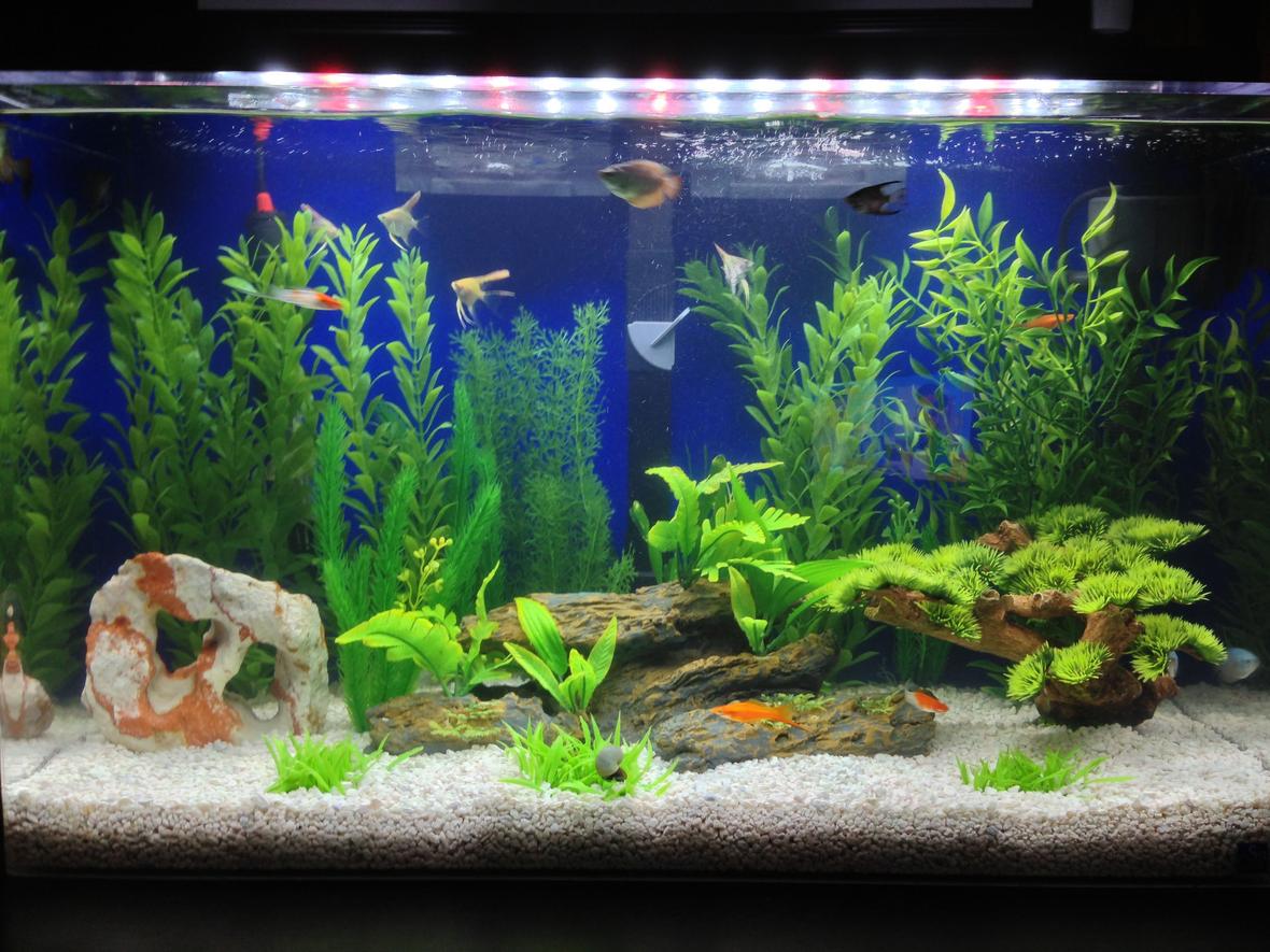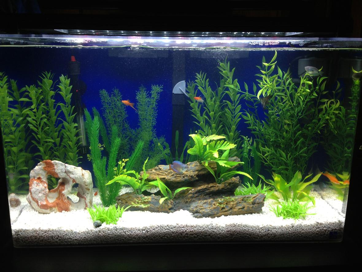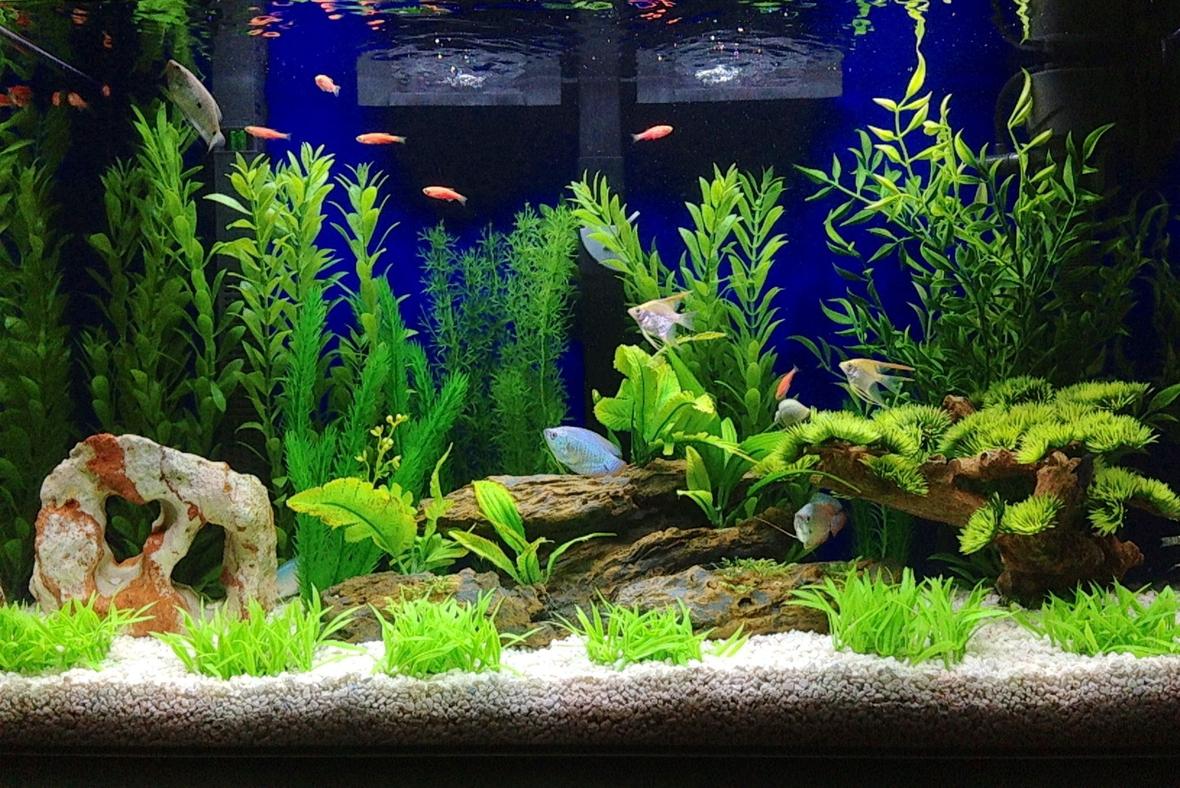 artificial plants and drift wood.