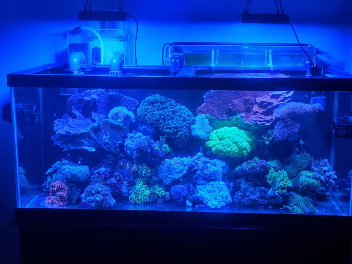 48x18x21 - 75g Reef - Reef Octopus HOB Skimmer - CPR 3 gallon refugium - 2 XR15 Gen5 Radion's- 50 lbs. live rock - 2 VorTec MP40w ES's