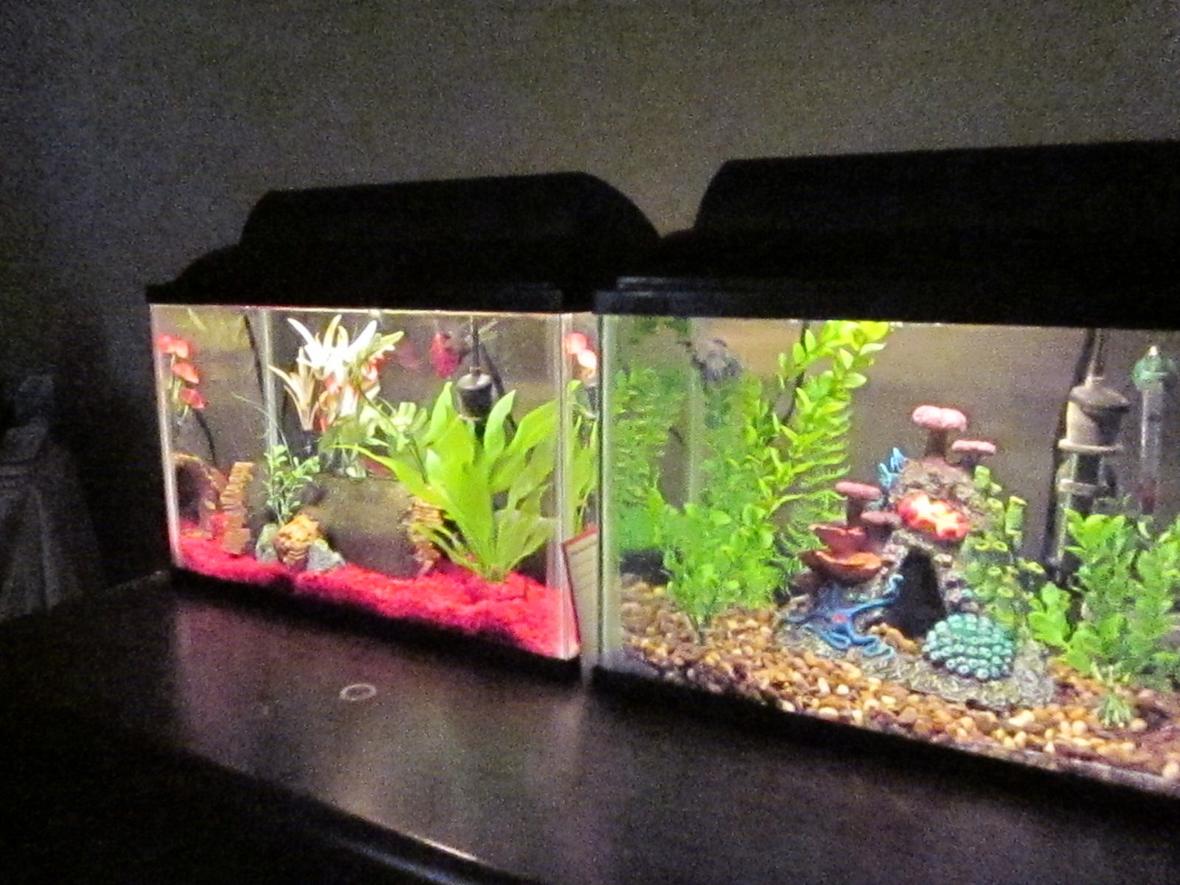 We started with a 55g with goldfish when I was 20. A few years ago we got a Betta, and we were gone from their. We then started with Cichlids over 2 months ago. We purchased a 125 last week, and are slowly setting it up. I have 2 Betta's each in their own 5g tank, a 20 Gallon with Gil the guppy, and the 46 with 8 cichlids.