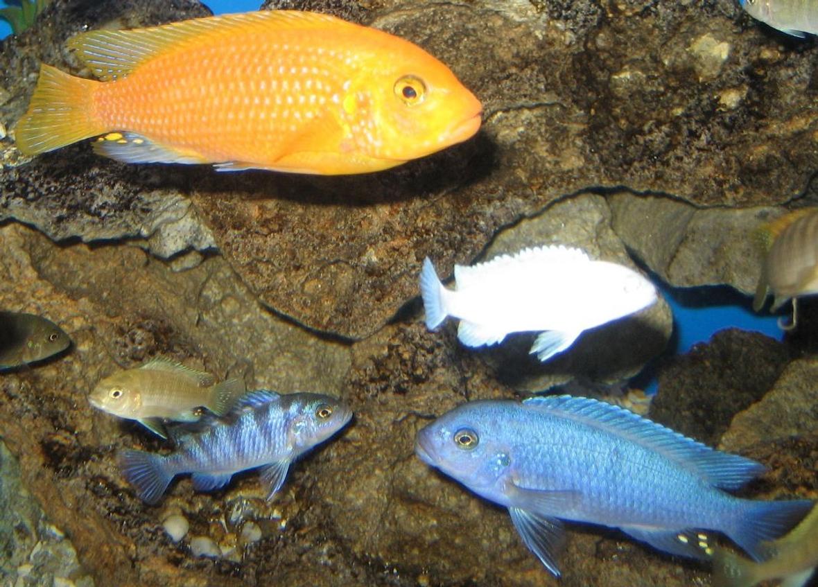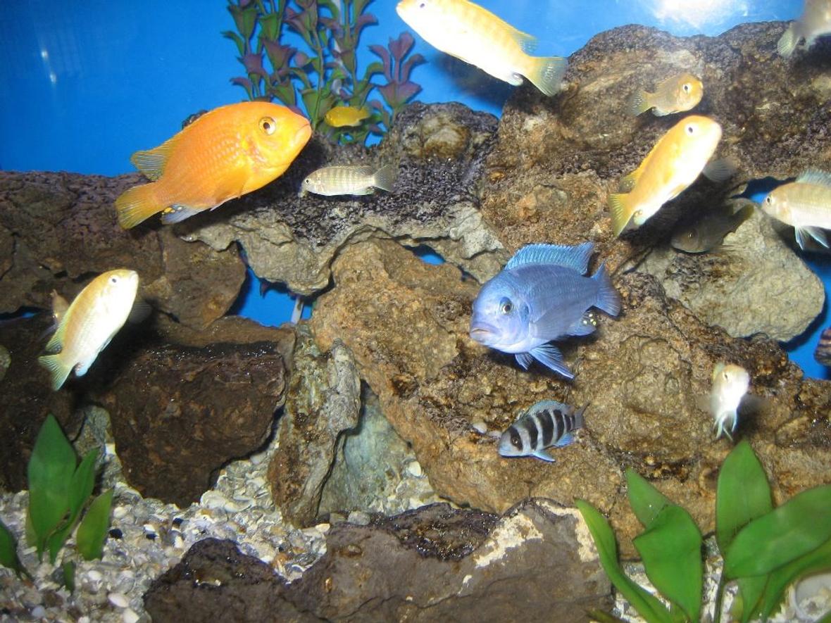 African Cichlid, 2 Synodontis petricola catfish, 2 black convicts, 2 frontosas,