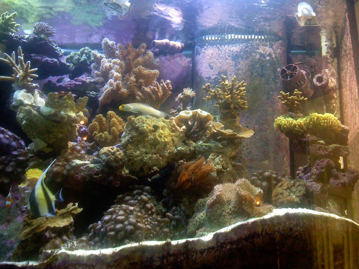 Yellow Tang, Blue Yellow-Belly Tang, Sailfin Tang, Orange Shoulder Tang,Blonde Naso tang,Achilles tang,Moorish Idol Six-Line Wrasse, 3-Stripe Damsel, Yellow Tail Damsel, Green Mandarine, 3 Gobies, Fox Face Lo, Sleeper Head Gobie, 2 Ocellaris Clownfish, 3 Anthias, Royal Gramma, Snails, Clams, Starfish and crabs.