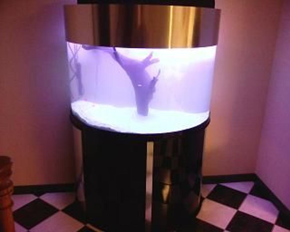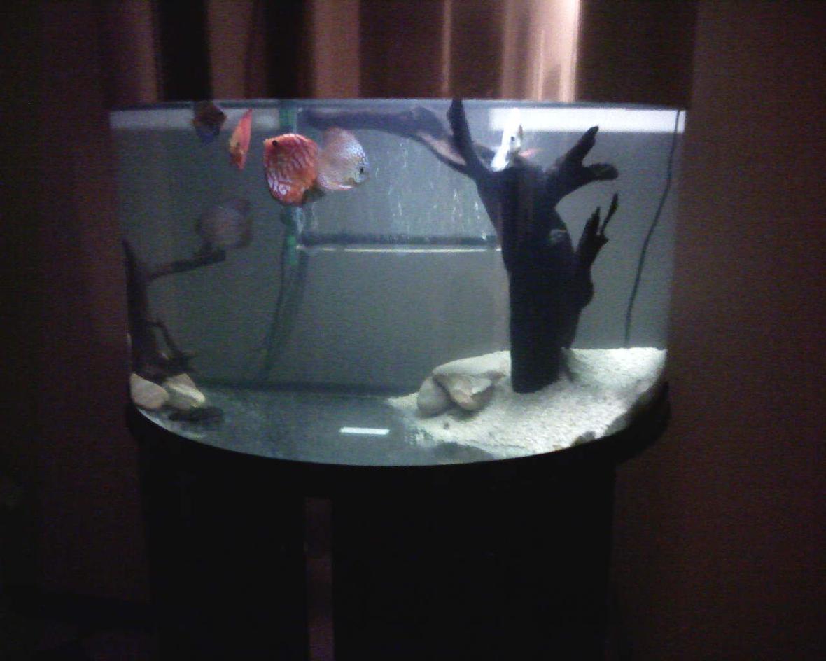 76 oceanic half circle discus tank. 12inch light flourescent light, ada gravel, one huge Arse driftwood. eheim canister