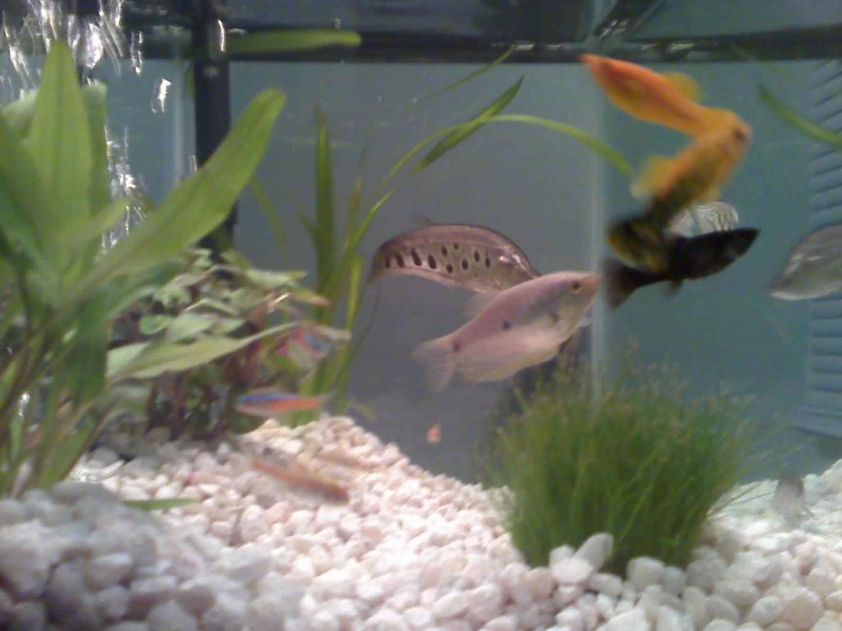 (1)clown knife (2)drawf gourami (4)molly's (2)neon tetra's (2)glow light tetra's (2)glow fish (2)cory cat's (2)algae eaters and (1) soft shelled turtle