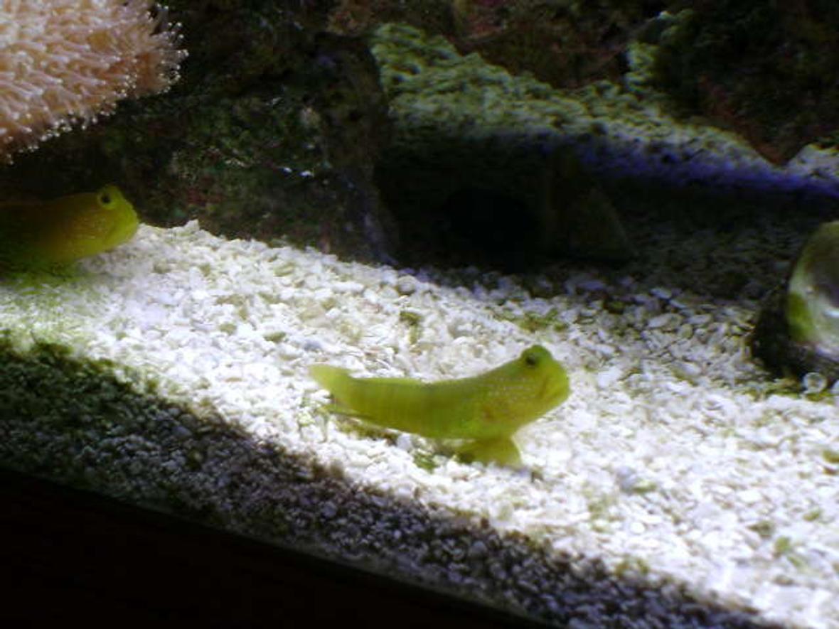 1 Percula clown, 2 yellow watchmen gobies(mated pair), and a baby Yellow tang(Temporary).