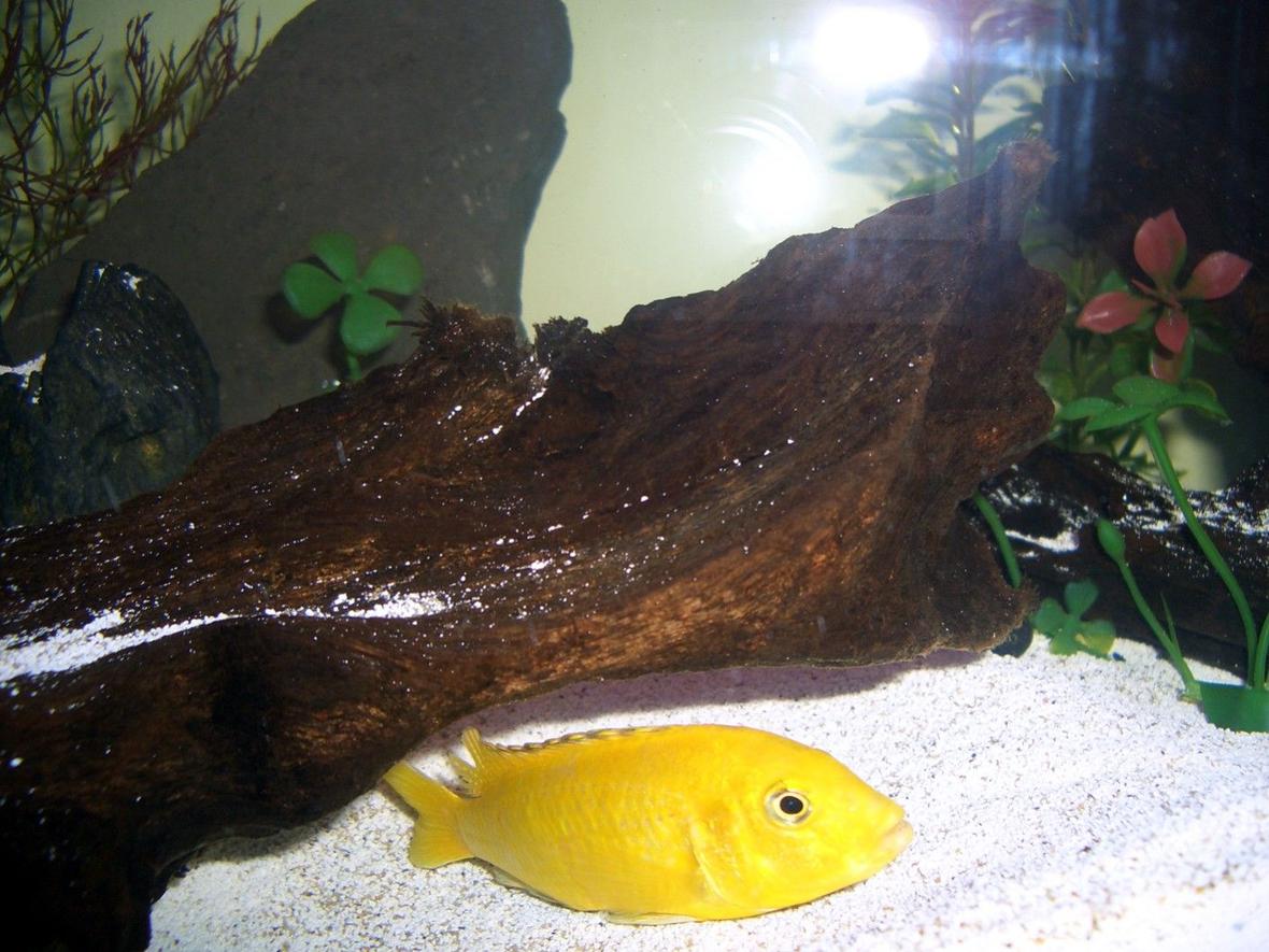 Drift wood, One real plant for more oxygen and filtration, the rest are fake.