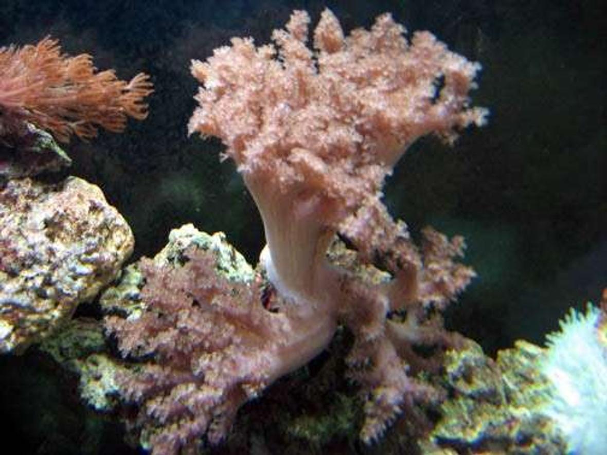 Assorted mushrooms and polyps, umbrella, scroll, favia brain, doughnut (3), carpet brain, bubble tip anemone, branching hammer (3), cabbage, orange plate, xenia, and colt