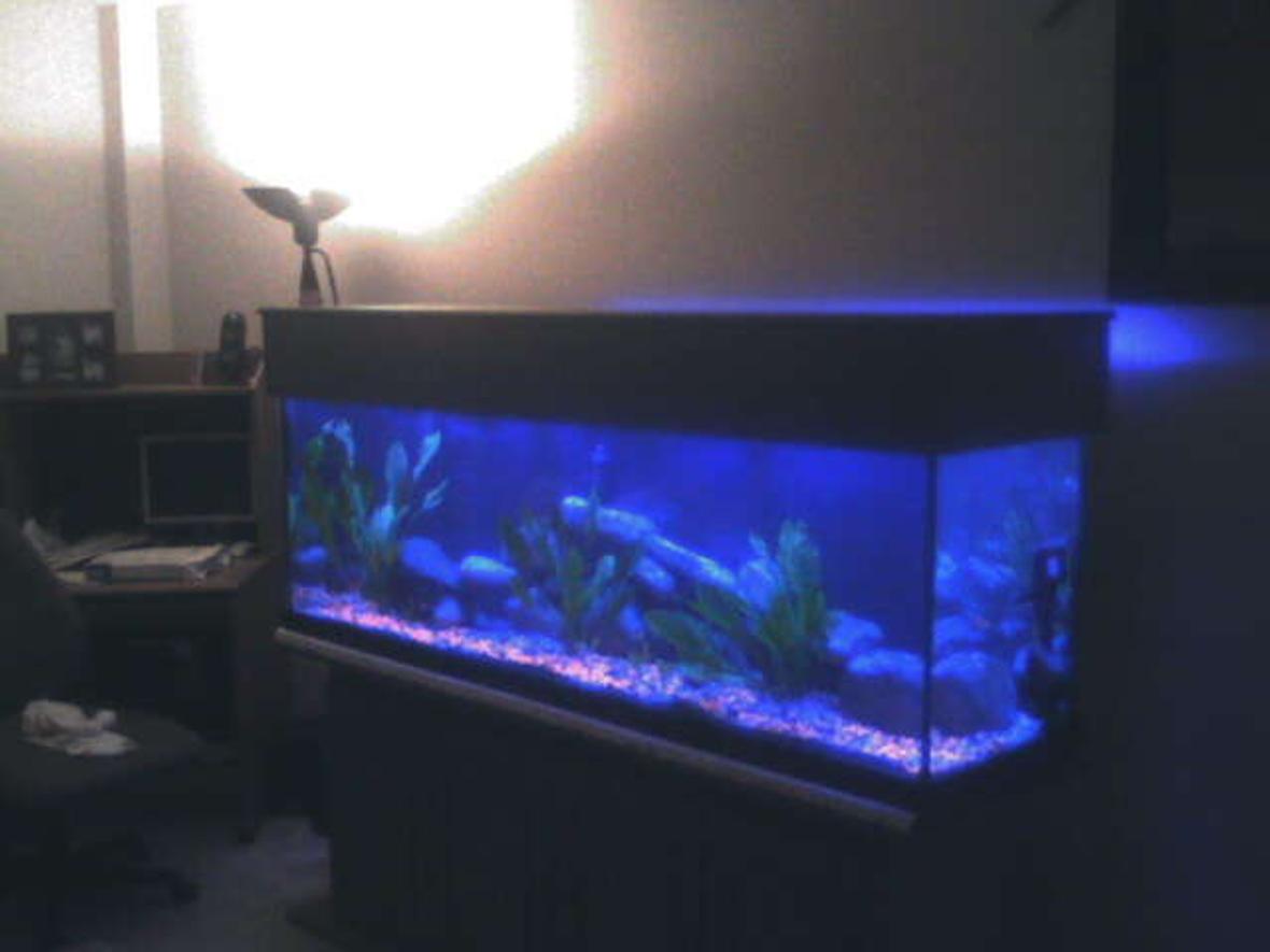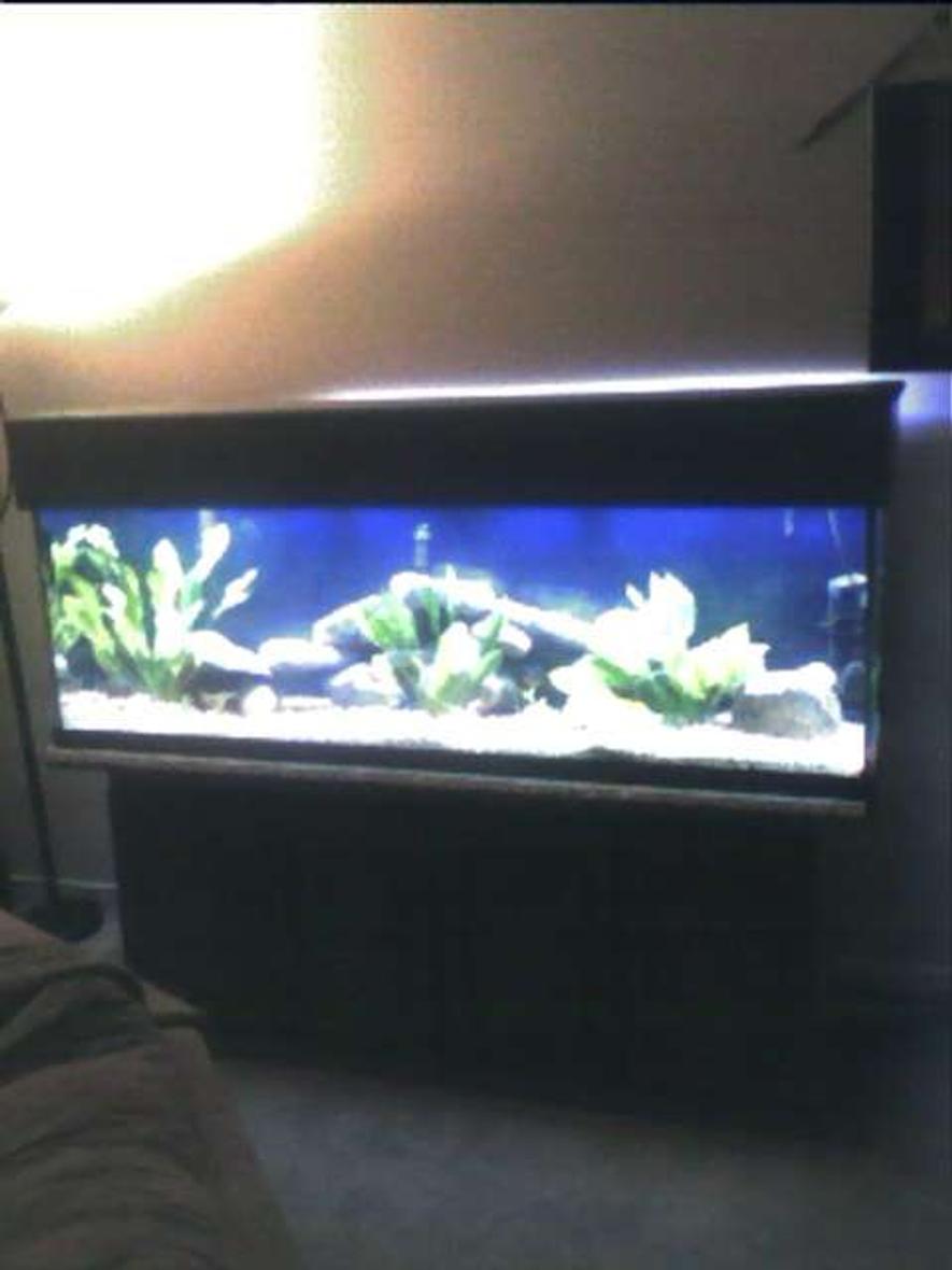 125 gal tank... 6feet by 2feet by 2feet 4 tube lights 2 blue 2 white..2 stage biowheel filter 300w heater