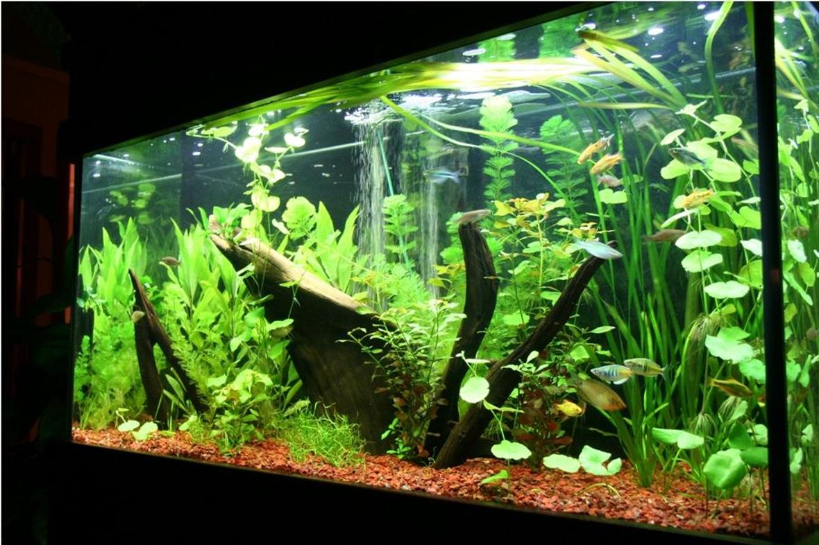 95 gallons planted tank (mostly live plants and fish) - 1 month old Asian/rainbow fish tank. Plants are growing nicely