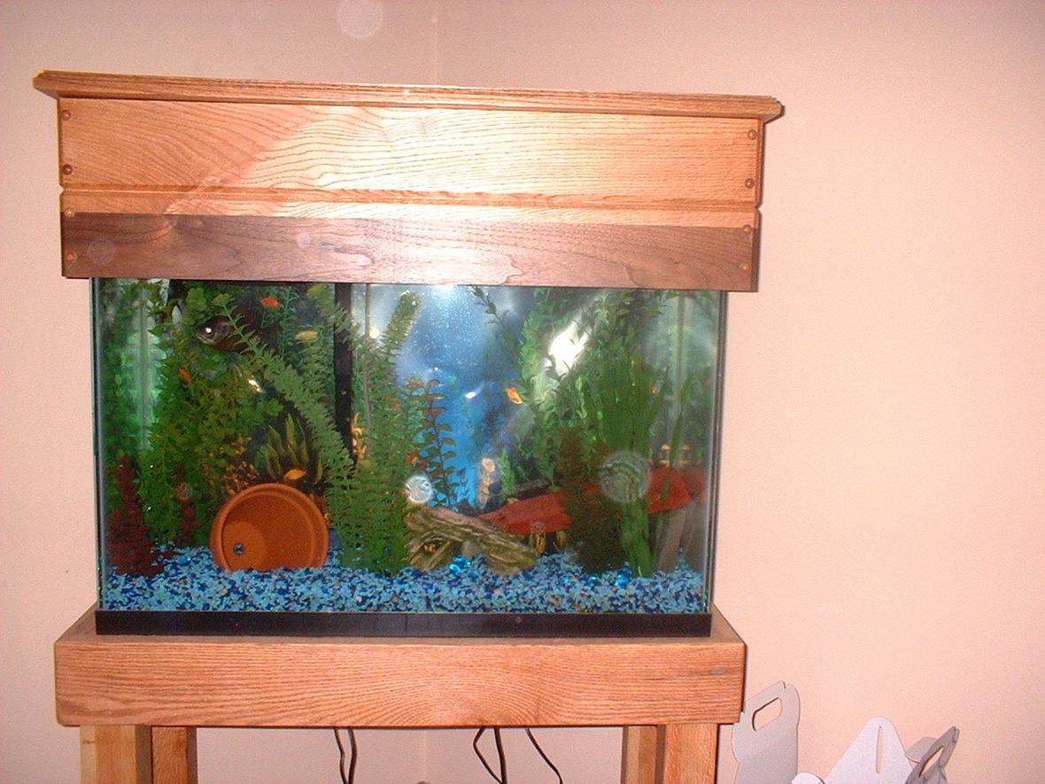 I started out with a community 10 gallon tank. It was fun for a while till i wanted to go bigger. Then i bought a 30 gallon,had that for a bit. then went bigger to a 55gallon. Now i have a sunfish and bottle mouth in my 30. Im a union carpenter so a stand/top were no problem to make.