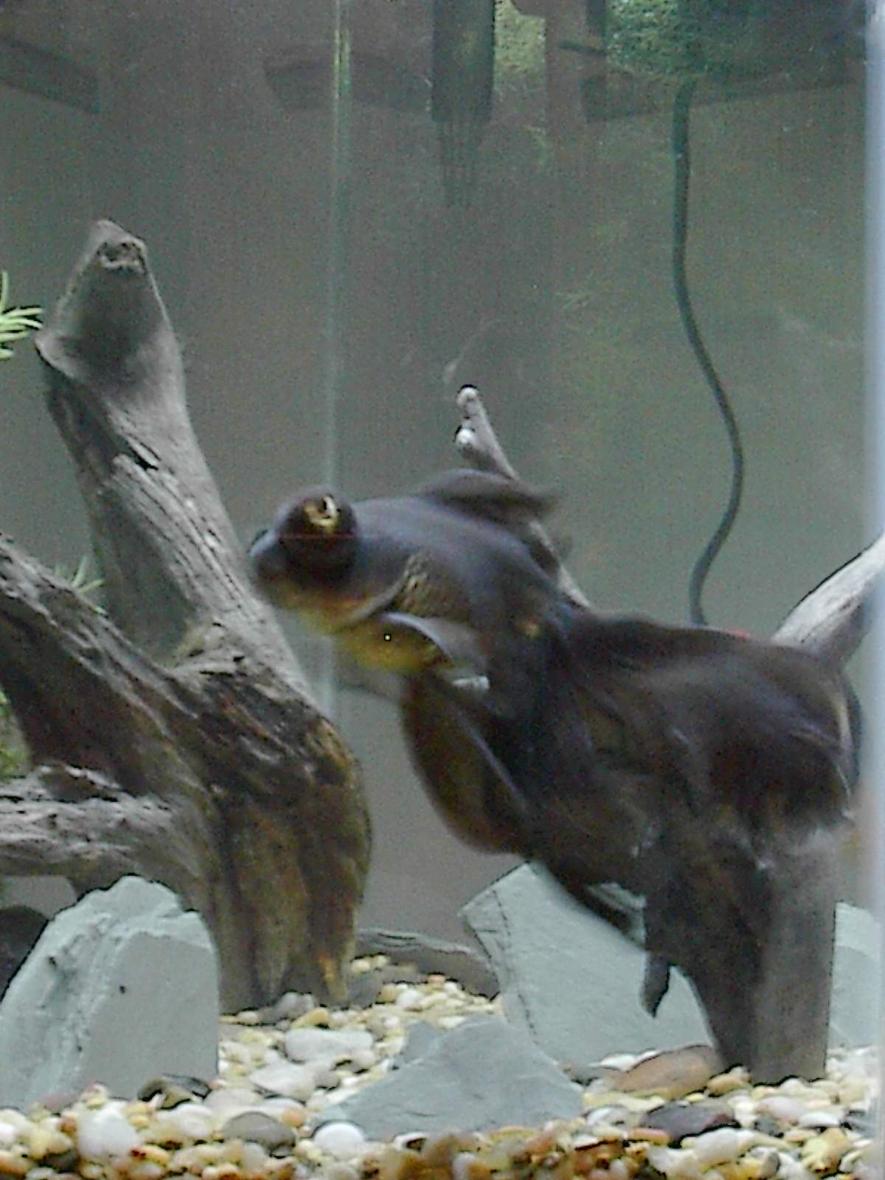1 Med. Panda Oranda, 1 large Chocolate Oranda, 1 Ex. Large Chinese Black Moore, 1 Large wht. Ryukin Goldfish -w- black-tipped tail + eyes. 1 (wht, blue, red, clear) patrnd beta, 2 golden dojos, 1 bristle nose pleco, 1 medium size marble angelfish and a school of six blood tetras.