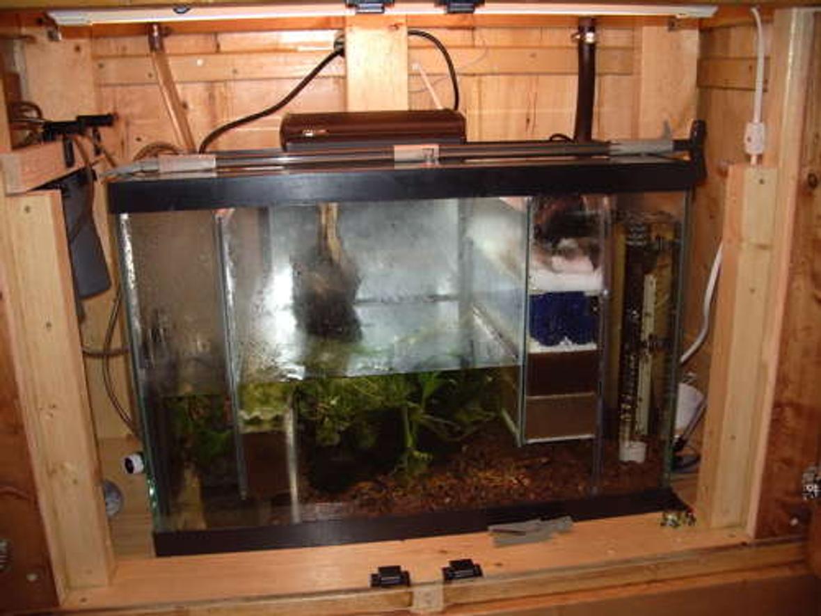 33 gallon freshwater planted tank, outfitted with overflow box leading to a sump/refugium on reverse photosynthetic cycle. Driftwood, anubius, cryps, otto cats, neons, flower shrimp, freshwater clams and more.