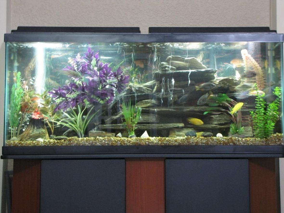 African cichlids fish, tank is 55g and decoration is rock, artificial plant and 1 volcano.
