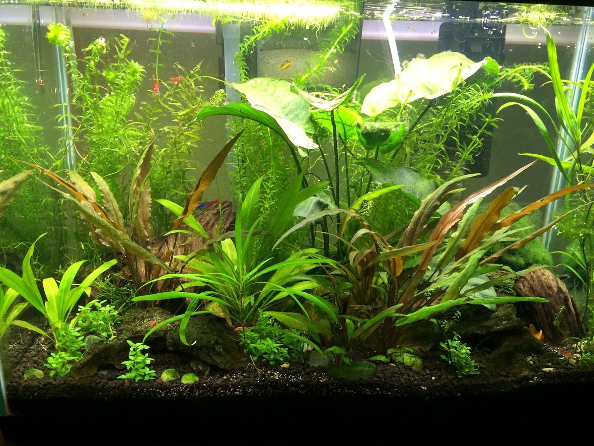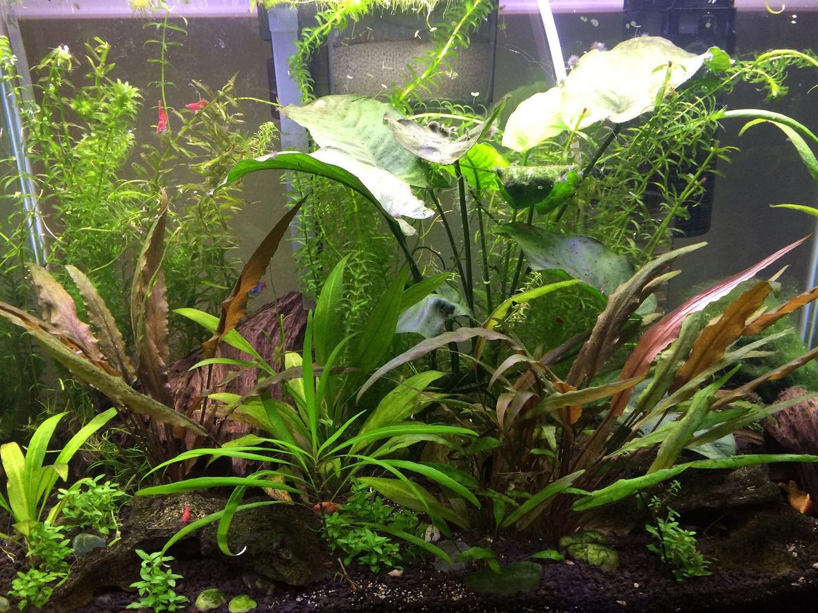 I also have Cherry Shrimps galore. As for plants, there are red swords, elodia, many more that I don't know. I should have paid more attention. I bought them mostly for the looks.