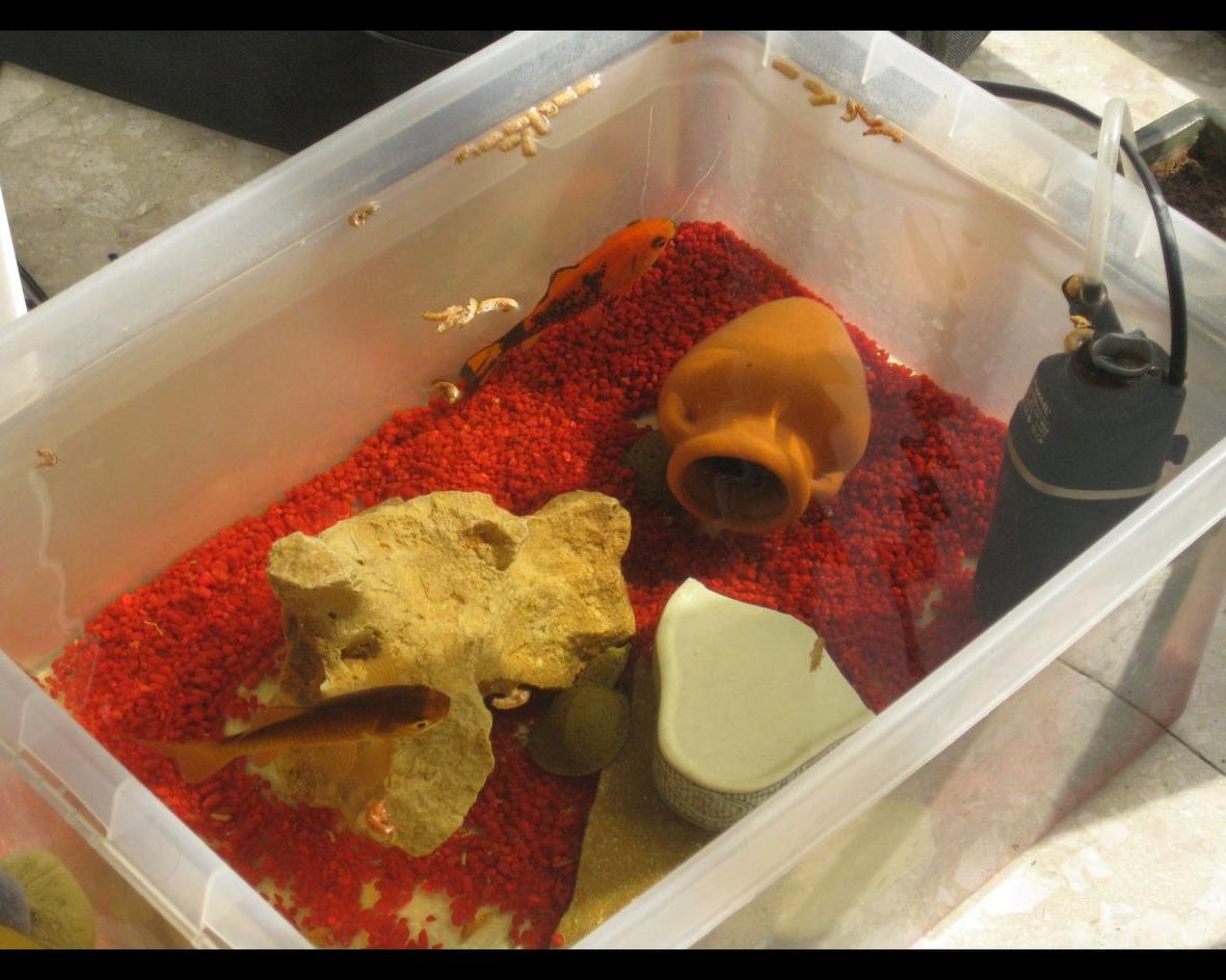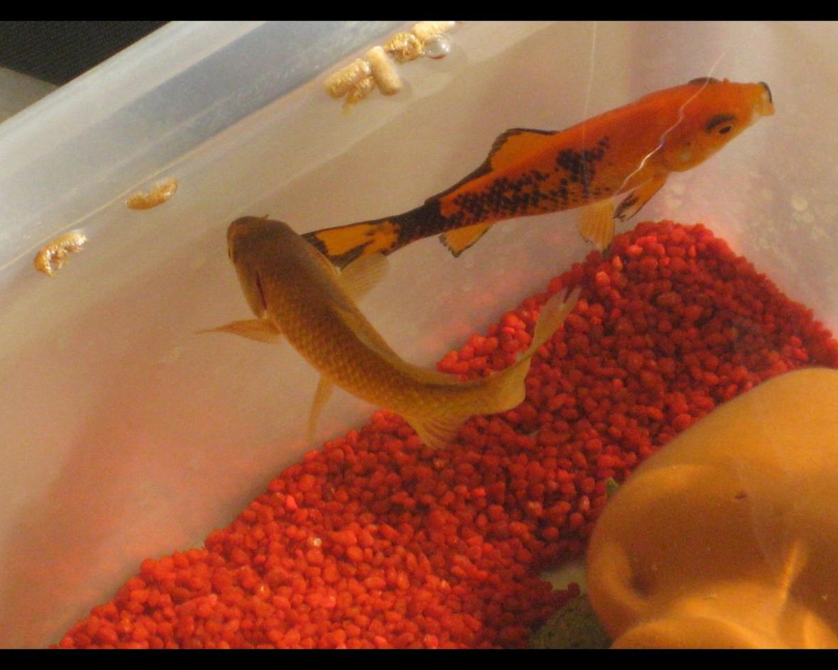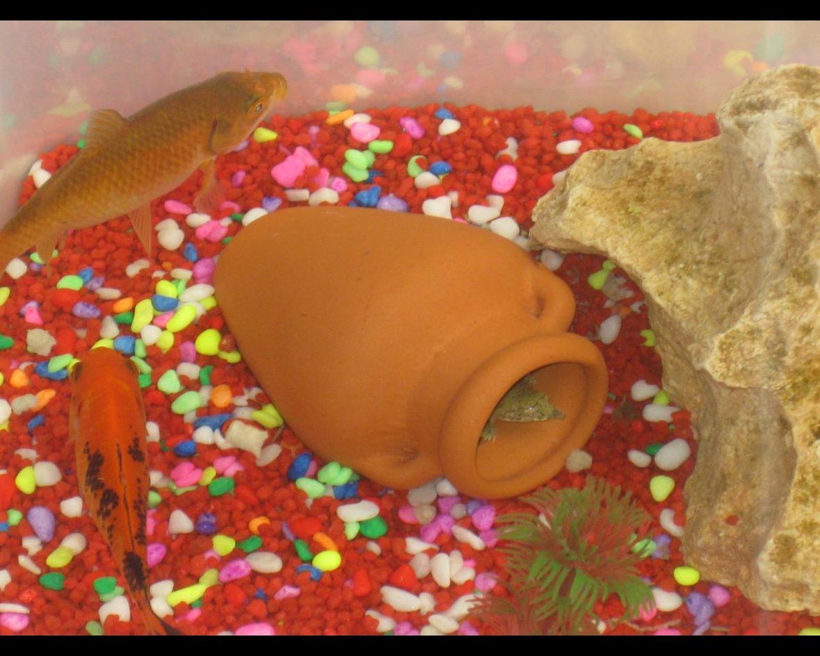 2 goldfish and 2 softshelled turtles