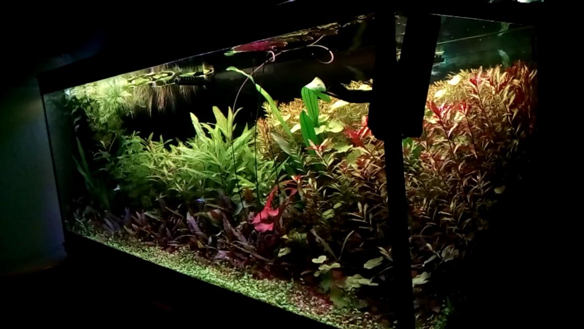 100 x 40 x 40 - 150 l, internal foam filter 1.5 l, LED - 300 x smd 5050 regulated to 24 - 36 W of real consumption, no heater - 24-30C, system of fertilizing - PMDD + CO2 - sparkling water.