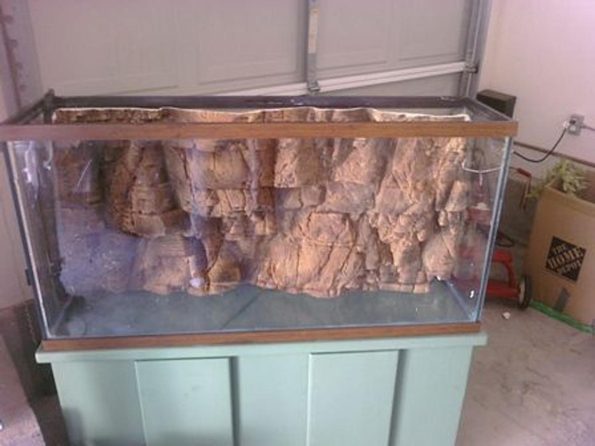 90 gallon show tank with Aquaterra Tanganika Background. Tahitian Moon Sand Substrate..Rena XP3 2 14" Actinic tubes in the day. 13,000 MCD Blue Moonlight LED for night.