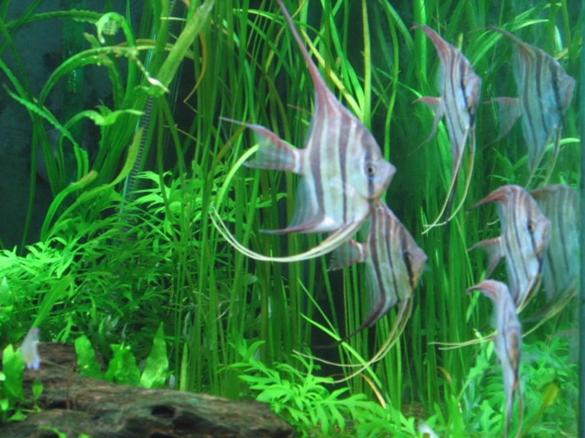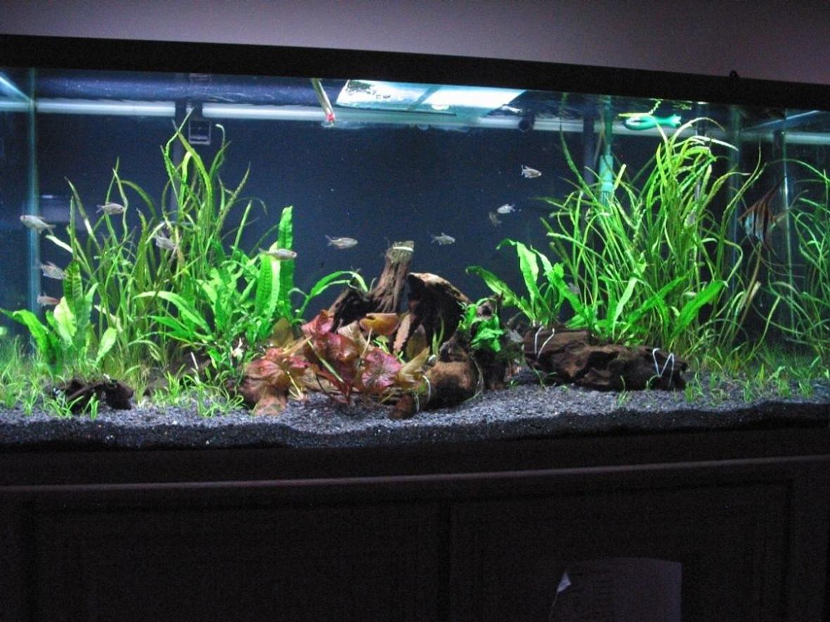 I had fish as a kid and always said I would get another tank as an adult. My husband finally purchased a 30 gallon for my birthday. That was in 1992. I have been hooked ever since. In the early days I kept a community tank and eventually decided that I loved the cichlids of South America. I kept dwarf cichlids for a few years and then moved to Angelfish. I have had some sort of Angelfish in my tank for the last few years. I had a brief stint with Altum Angels and now I am in love with Discus. Ironically enough when I changed teh tank I was going to invest in a group of pearl gourami's thus the dark background and dark substrate. Discus usually look better (don't pepper or darken) with lighter background and substrate but they were a gift. Once the plants grow in not much of the substrate will show anyway.