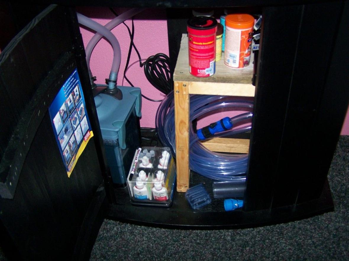 we started our 46 gallon 2/22/08. the tank is an all glass tank, with a Hagen Glo T5 HO Lighting System , Double tube 36" and a Rena XP2 canister fiilter. were hoping to eventualy do salt but we want to do mor reaserch and have a place we know we are going to stay at for a long time first.we also have a 10G with a feeder goldfish that is about5-6" long now