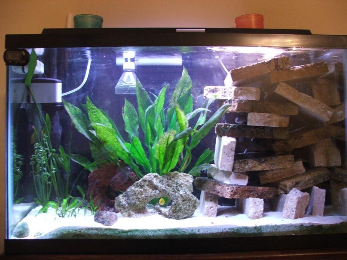 <p>Plants: 2 Amazon Swords (that has taken off quite well since I bought it); 4 Corkscrew Vallisneria (arent doing so great, but are pretty inexpensive around $1.49); 1 Moneywort</p>