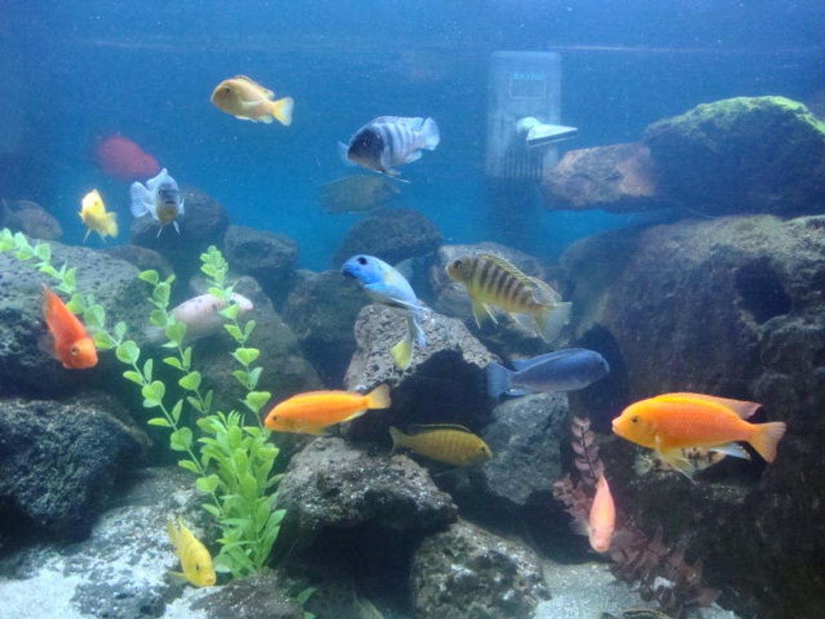 Check out my videos of all of my tanks and my fish room on youtube type in cichlidmania26. please rate my tank and leave comments. i really want other peoples ideas and what they think of it. i love fish tanks more than anything. so iet me know.i have a 125 gallon freshwater cichlid tank hooked up to a 100 gallon sump tank in another room. im running a pond filter with a built in uv sterilizer. this filter is ran by a 3500 gph pump. i have a 200 micron sock on my over flow. i have four t5 two of them which are atinic bulbs. i have around 200 pounds of crush coral between the tank an sump tank. i have over 60 fish in this one tank. plus i have seven other tanks running on this system with around 200 other fish. including blue and red peacocks.