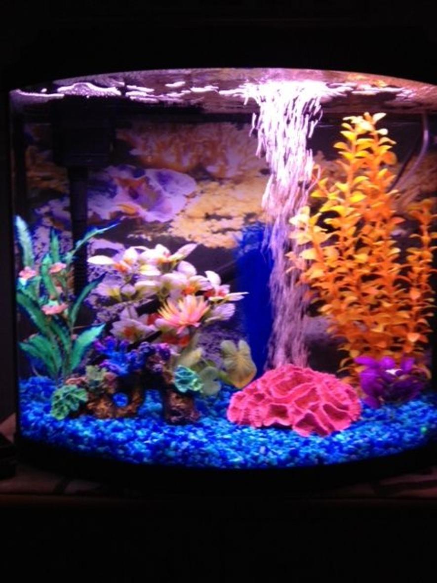16 gallon bowfront. 2 angelfish. Marble and black marble. Names Mulder and Scully