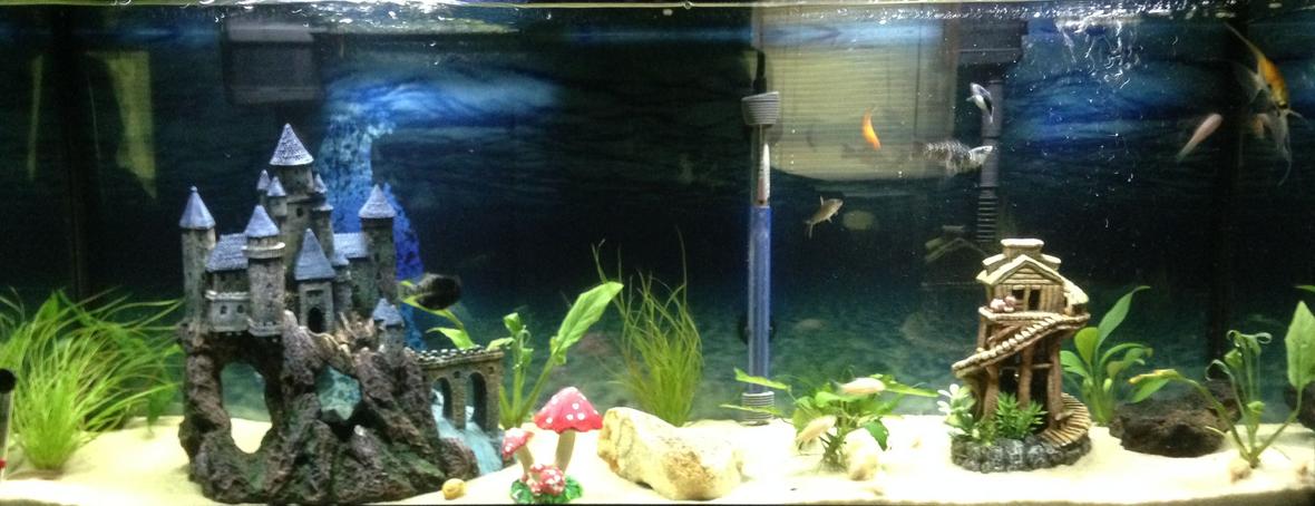 Fish Kept: 8 Albino Cories, 3 dalmatian mollies, 1 sunburst platy, 1 mickey mouse platy, 3 green lantern platies, an angelfish, 4 black kuhli loaches, 1 golden dojo loach, 4 leopard plecos, 5 african cichlids, 2 fiddler crabs, 2 koi, 2 green catfish, and a ton of guppies and baby dalmatian mollies.