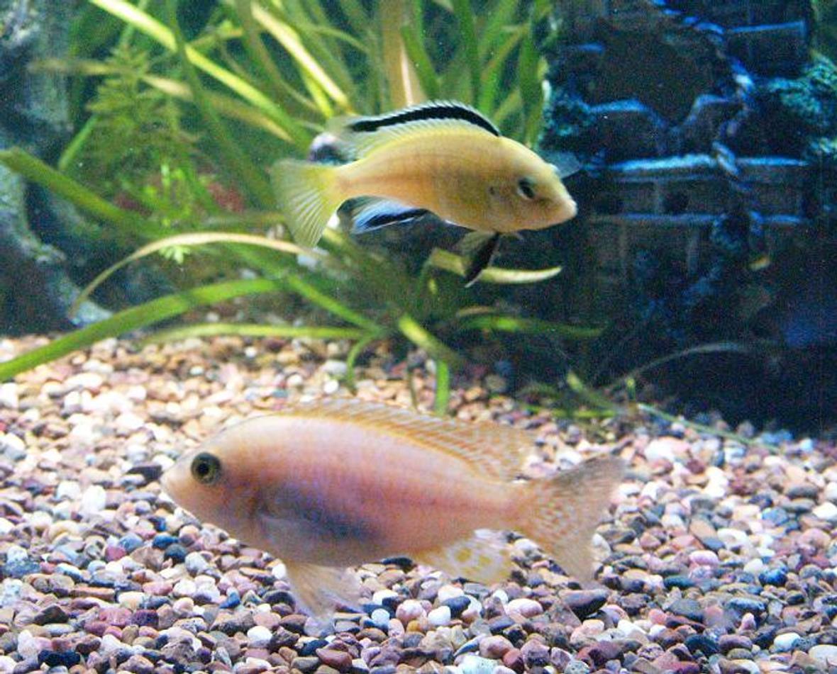 too many fish, 2 x blue dolphins, red rubin peacock, sunsine peacock, 3 x Electric Yellows, 2 x mono sebaes, red scat(mega plant eater), 2 x rustys, 2 red forest jewel, 2 x sucker fish, 2 x dragon blood peacocks, jaycob, 2 x guromi, 2 x Kenyi, about 10 more fish.