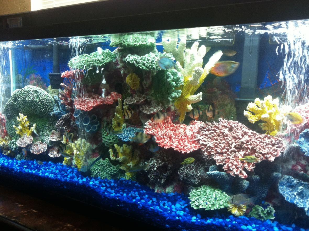 Photo #1 - Coral, Blue Gravel, 55 Gal - 5 Dwarf Puffer,7 Ti...