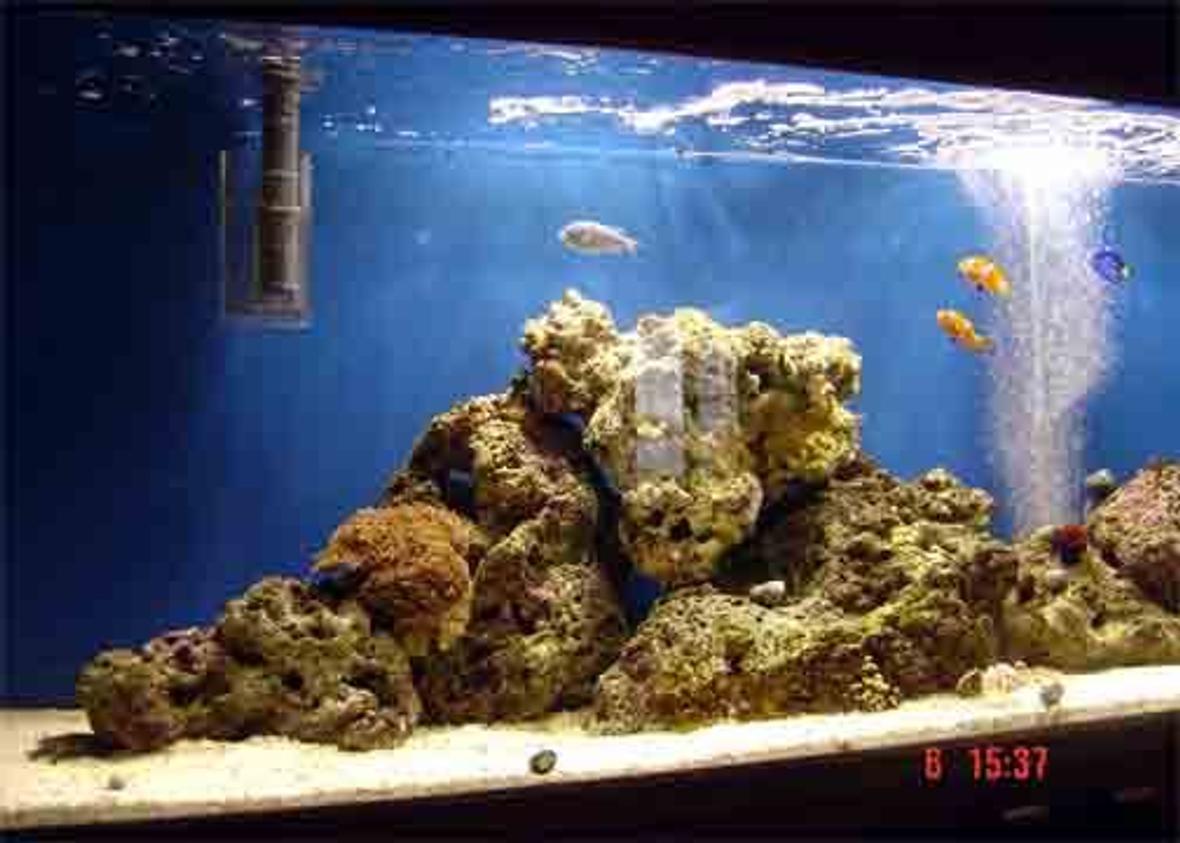 Approx 130 Kgs or 285 pounds of LR. Number 2 grain white crushed coral substrate, and a tennis ball size air stone.