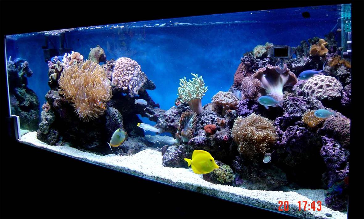 Tank size * 5ft x 2ft x 2ft, Sump 5ft x 18" x 21" Octopus HOB skimmer which is now in sump,1 Ehiem 2500 ltr p/h External Canister Filter, 4 - Metal Halides - 150 watt each with 20000k Bulbs, 2 Ehiem 800 ltr p/h internal Power Heads, Fluro T5 bar with Blue Actinic Grow Lights, 2 x 300 watt heaters (one just incase) 1 return pump from sump pumping at a rate of 7500 ltrs p/h. Halides running for 8 hours with the actinics running 1 1/2 hours either side of that. Also middle section of sump is a refugium, with 2 bar fluros for lighting on the oppisite hours to main tank. Caluprea growing in tank for nitrate reduction purposes.