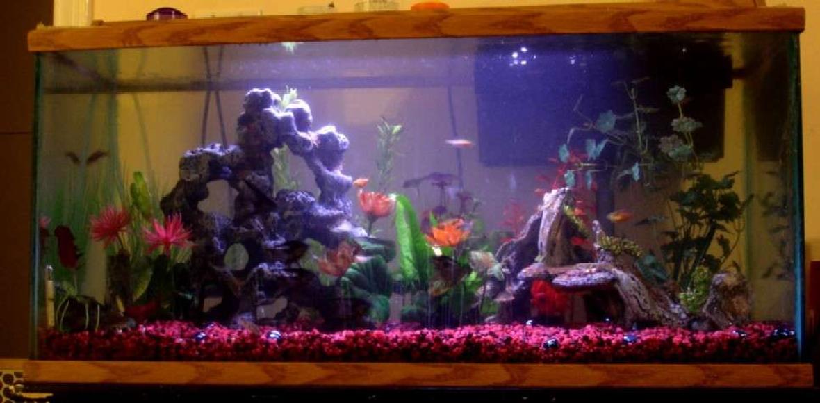 60 gallon glass aqaurium, bio wheel, mounted filtration, bubble wall.