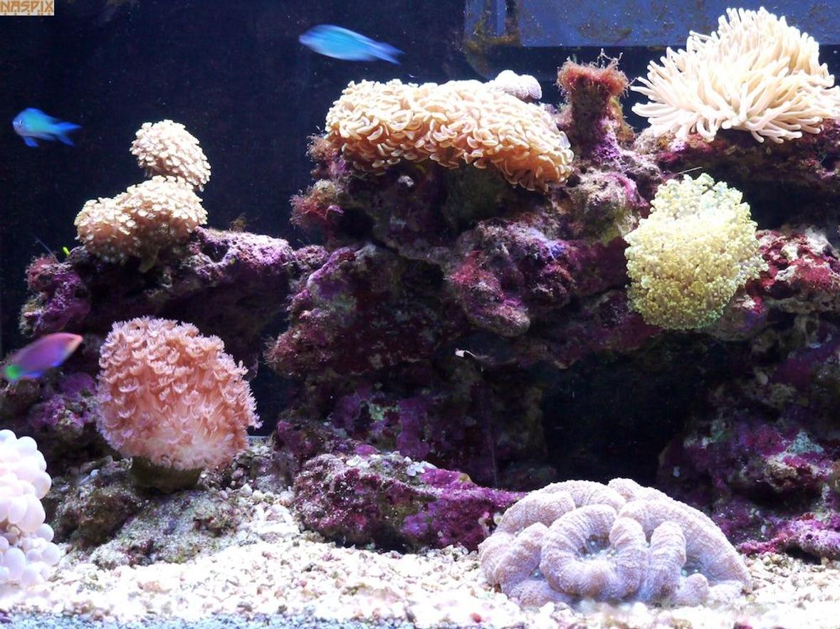 Brain Corals, Blue Maxima Clam, Metallic Blue Mushroom, Orange Tube Coral, Long Tentacle Plate Coral, White Bubble Coral, Hammer / Anchor Coral