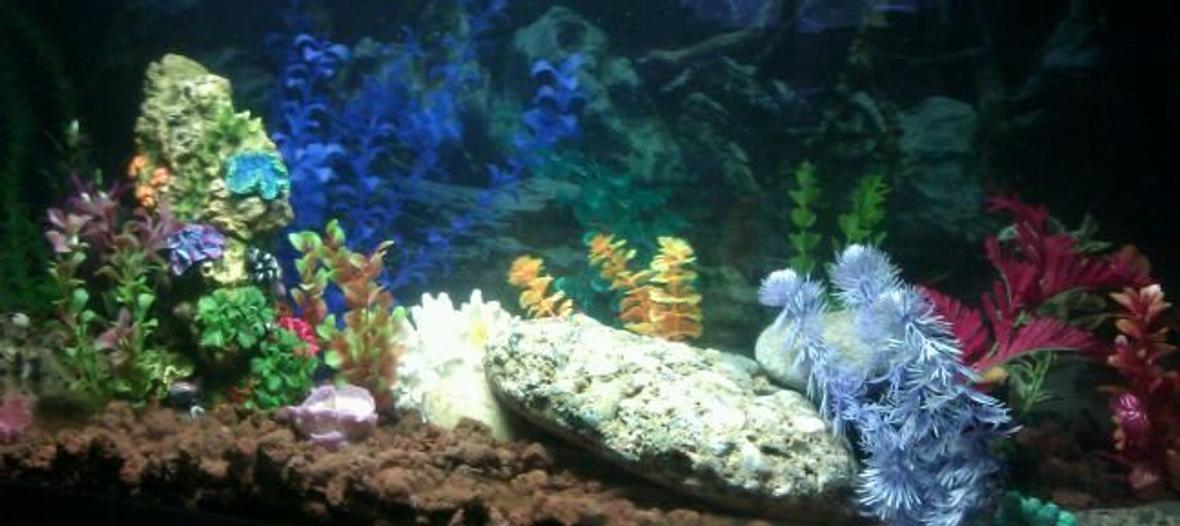 I've got a 110 gallon freshwater fish tank, loaded with lava rock, artificial plants, fake coral, and large stones I found at the beach.