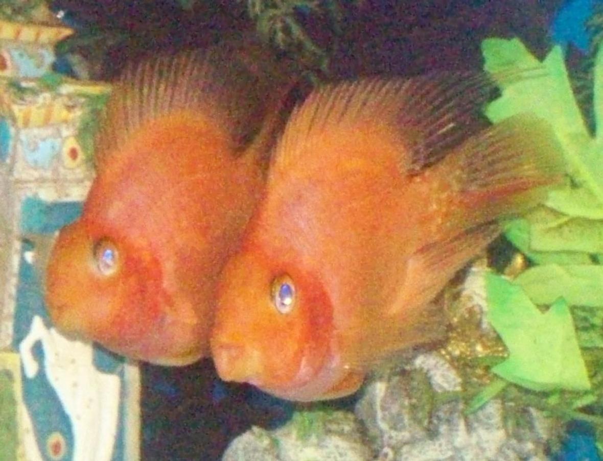 3 Blood Parrots (two regular and one purple), one ID shark, one tri colour ID shark and 3 golden algae eaters.